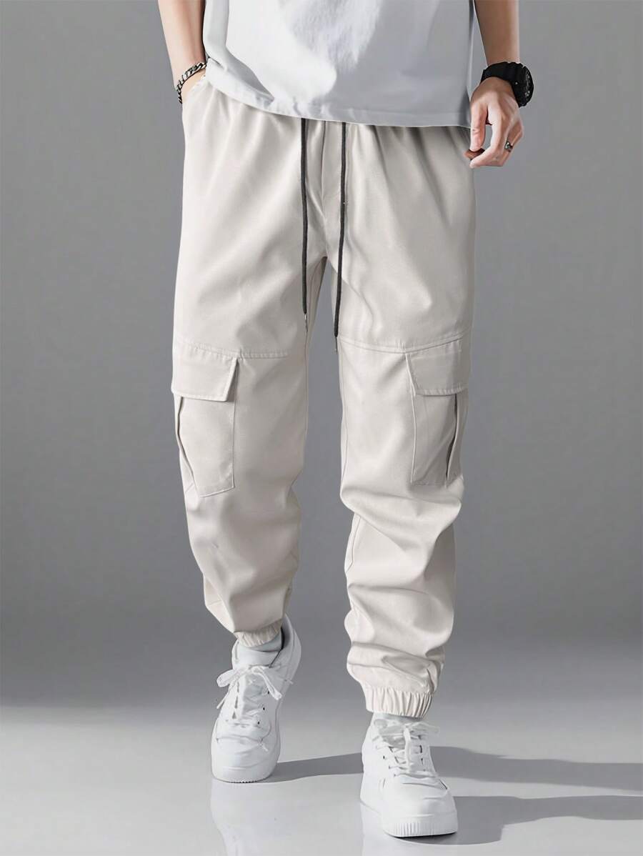Hombres Pantalones cargo con bolsillo lateral con solapa de cintura con cordón