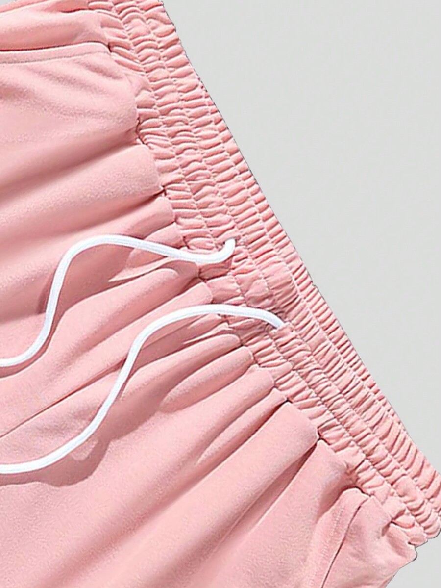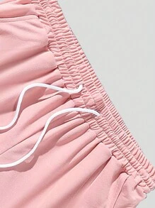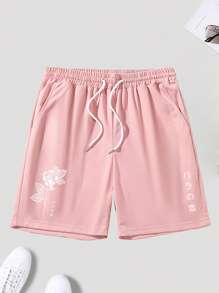 Hombres Shorts con estampado floral & de letra japonesa de cintura con cordón