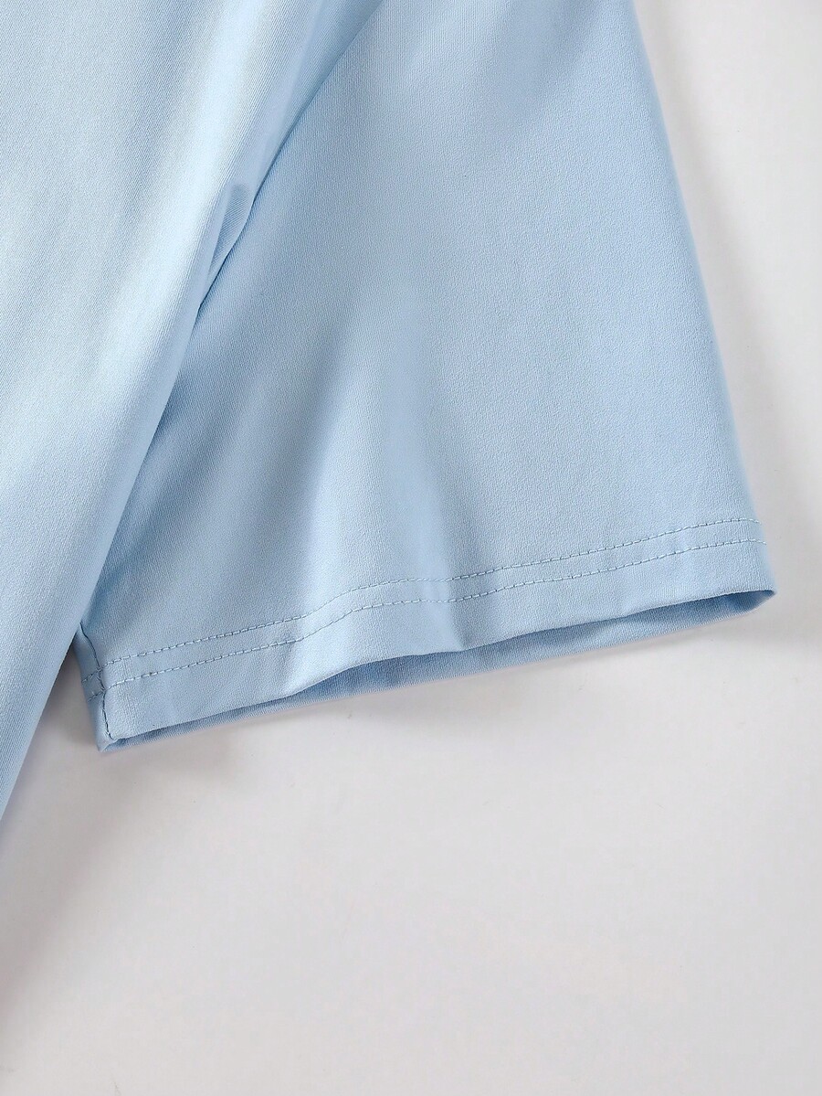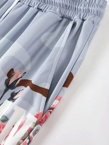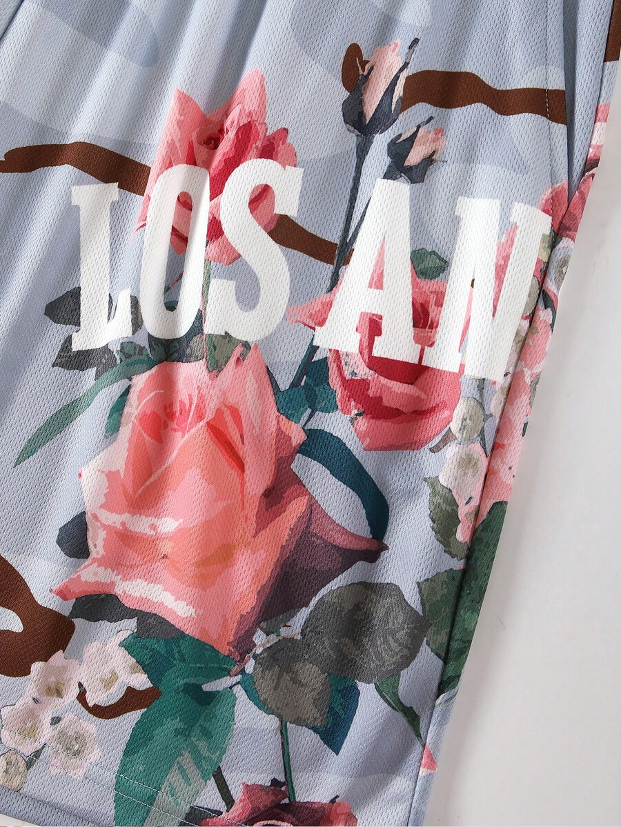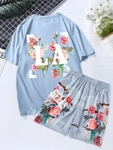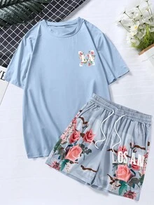 Hombres con estampado floral con letra Camiseta & de cintura con cordón Shorts