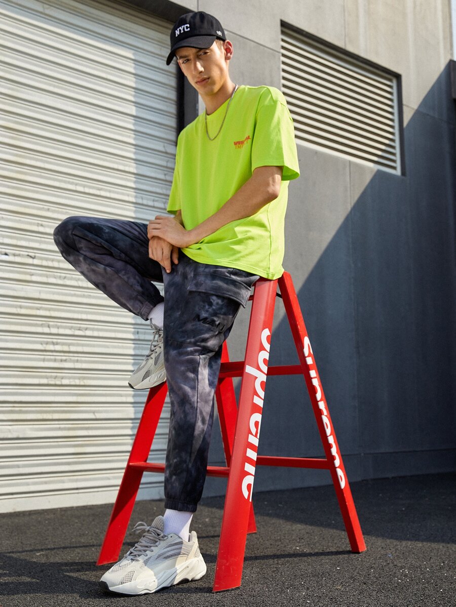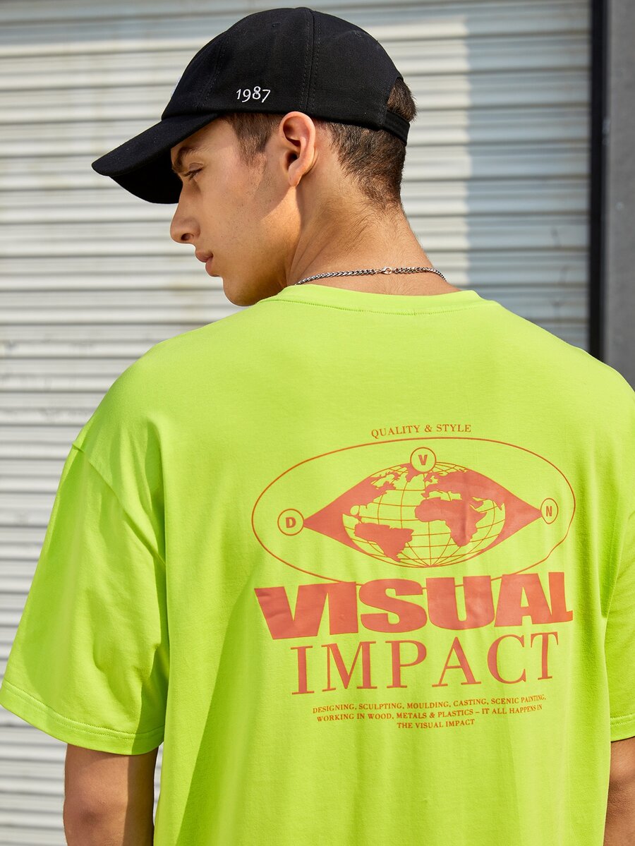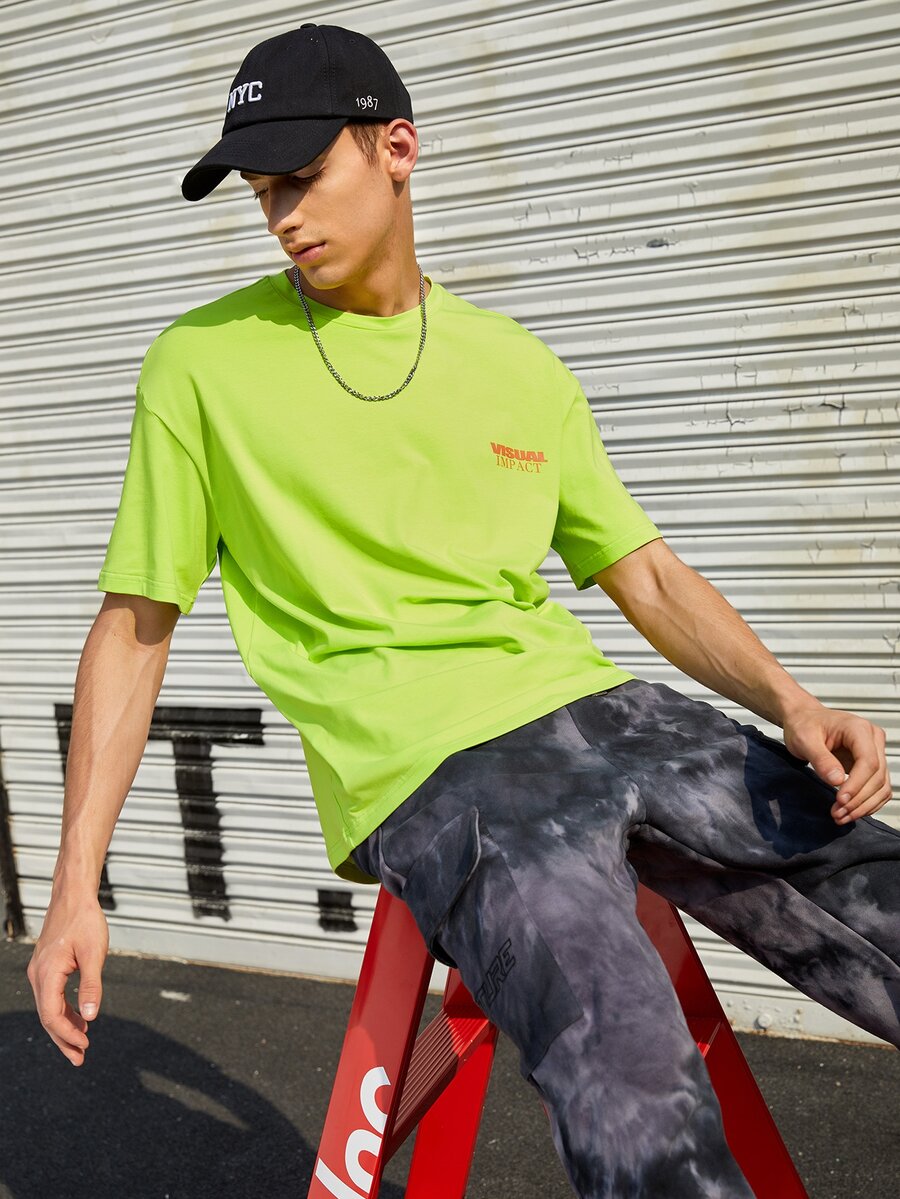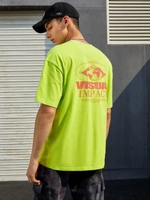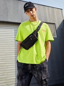 Top con estampado de letras verde fluorescente para hombre sin bolsa