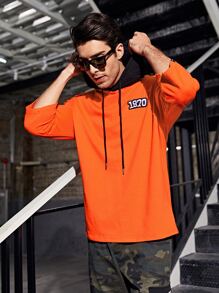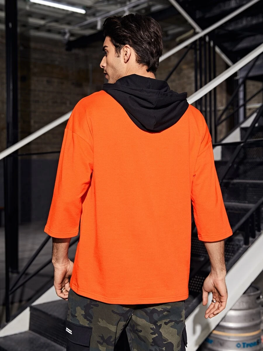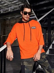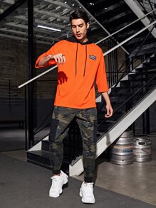 Sudadera con capucha con cordones y detalle de parche naranja fluorescente para hombre