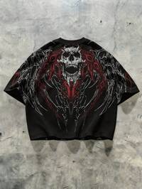 Goth Camiseta de hombre con estilo callejero gótico americano, parches y lavado a la piedra de manga corta