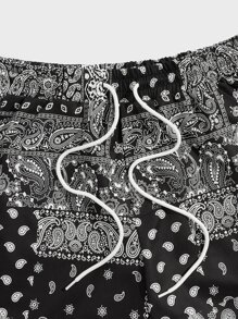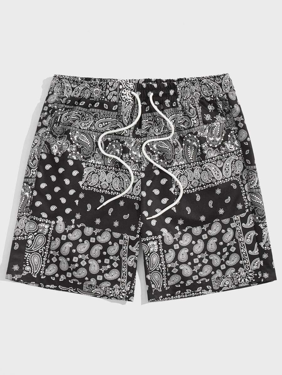 GENTILAND Hombres Shorts con estampado de paisley de cintura con cordón