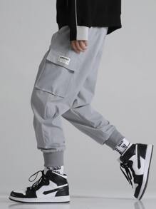 Pantalones Cargo De Hombre Con Bolsillos De Solapa Distintiva