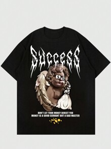 Street Life Hombres Camiseta con estampado de slogan y dibujos animados