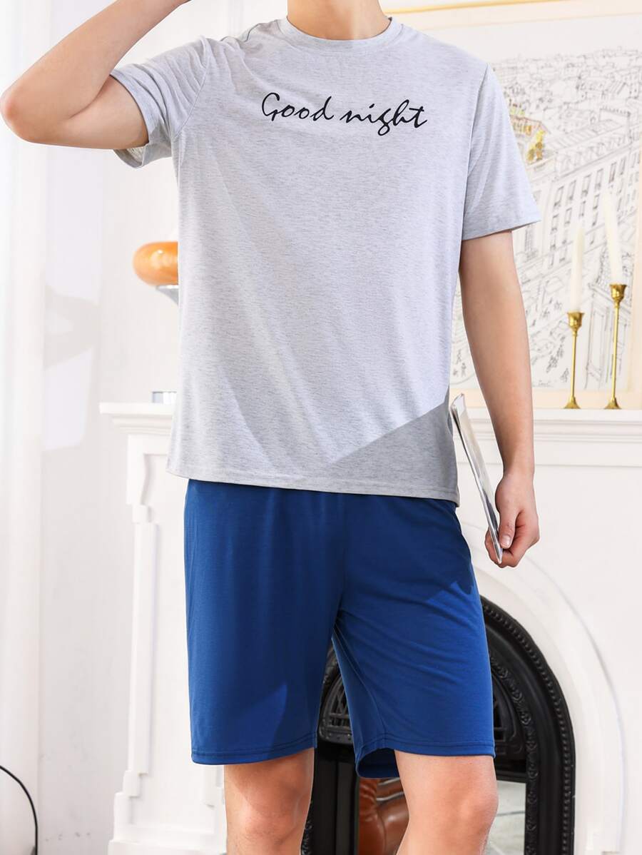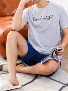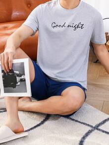 Hombres Conjunto de pijama con estampado de slogan