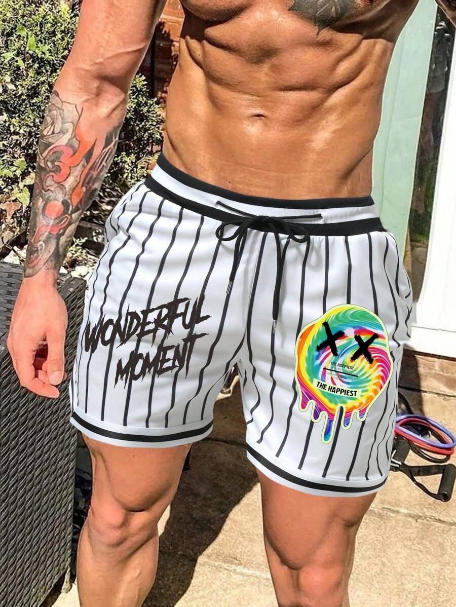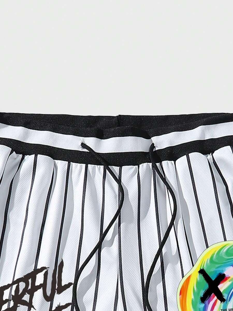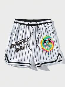 Hombres Shorts de rayas & con estampado de dibujos animados de cintura con cordón