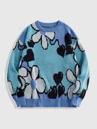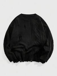 Suéter de manga larga con gráfico de bloque de color, estilo callejero, con hombros caídos y rasgado, de rayas para hombre, para vacaciones, amigos, suéter de punto de hombre, suéter de punto a rayas, suéter a rayas desgastado, suéter de cuello redondo a rayas para hombre, otoño e invierno