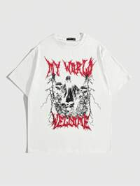 Grunge Punk Camiseta con estampado de eslogan para hombres, apta para uso diario en primavera y verano