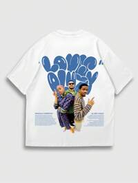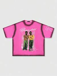 Street Life Camiseta de manga corta con holgada cabida y estampado de retrato de diamante para hombre