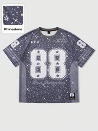 Street Life Camiseta de manga corta unisex con gráfico de estrella de pedrería con estilo, diseño americano de estilo callejero