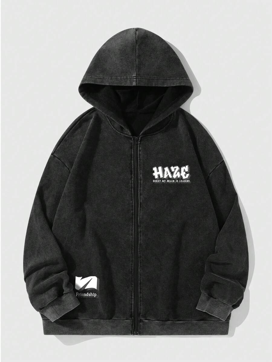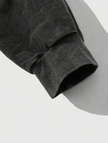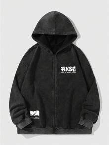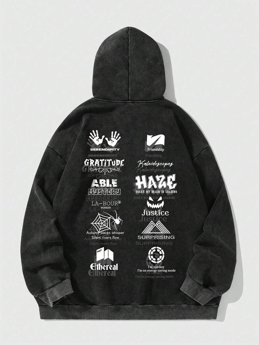 Sudadera con capucha negra con estampado de copos de nieve lavada para hombre, otoño/invierno