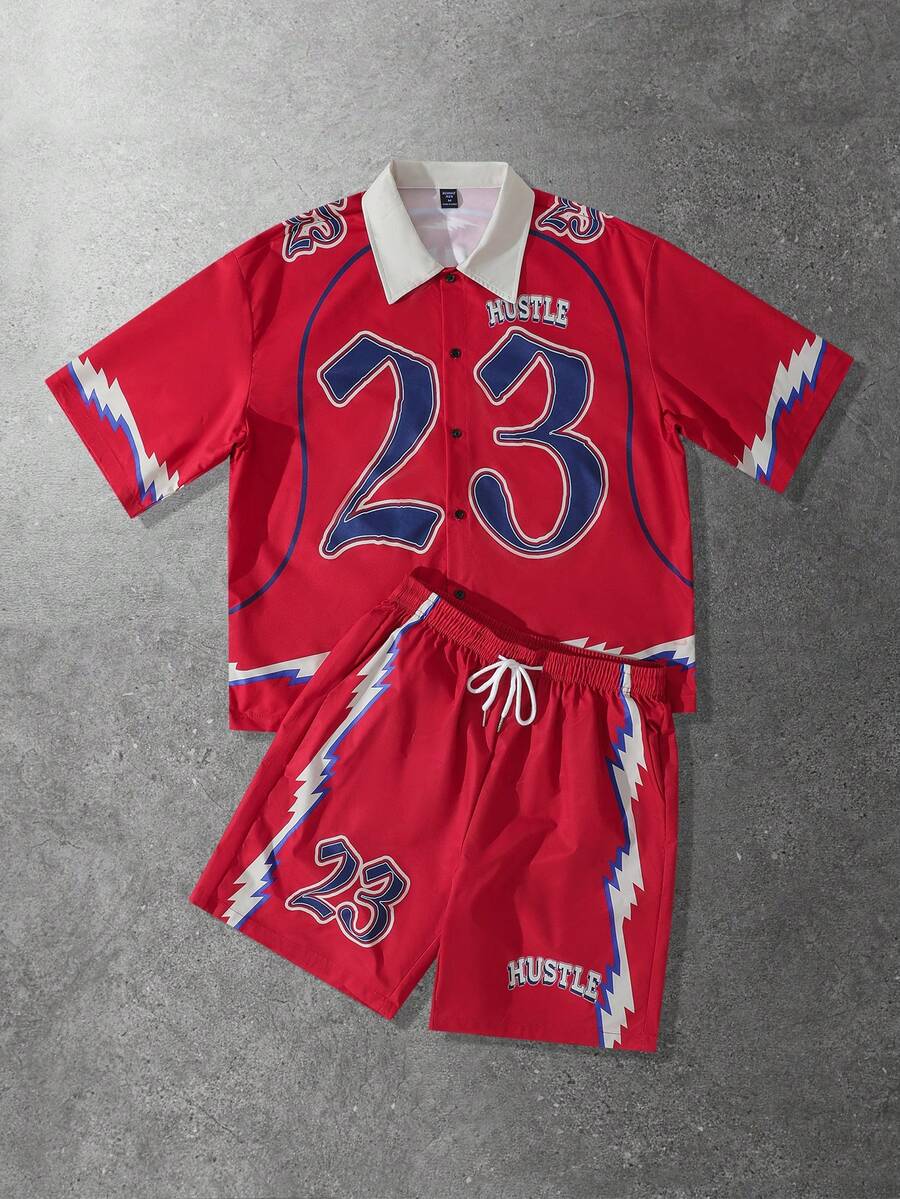 Conjunto de 2 piezas de camisa casual y pantalones cortos con estampado #23 para hombre