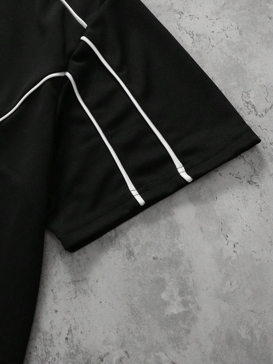Conjunto de camiseta y pantalones cortos casuales para hombre con ribete de contraste, para verano