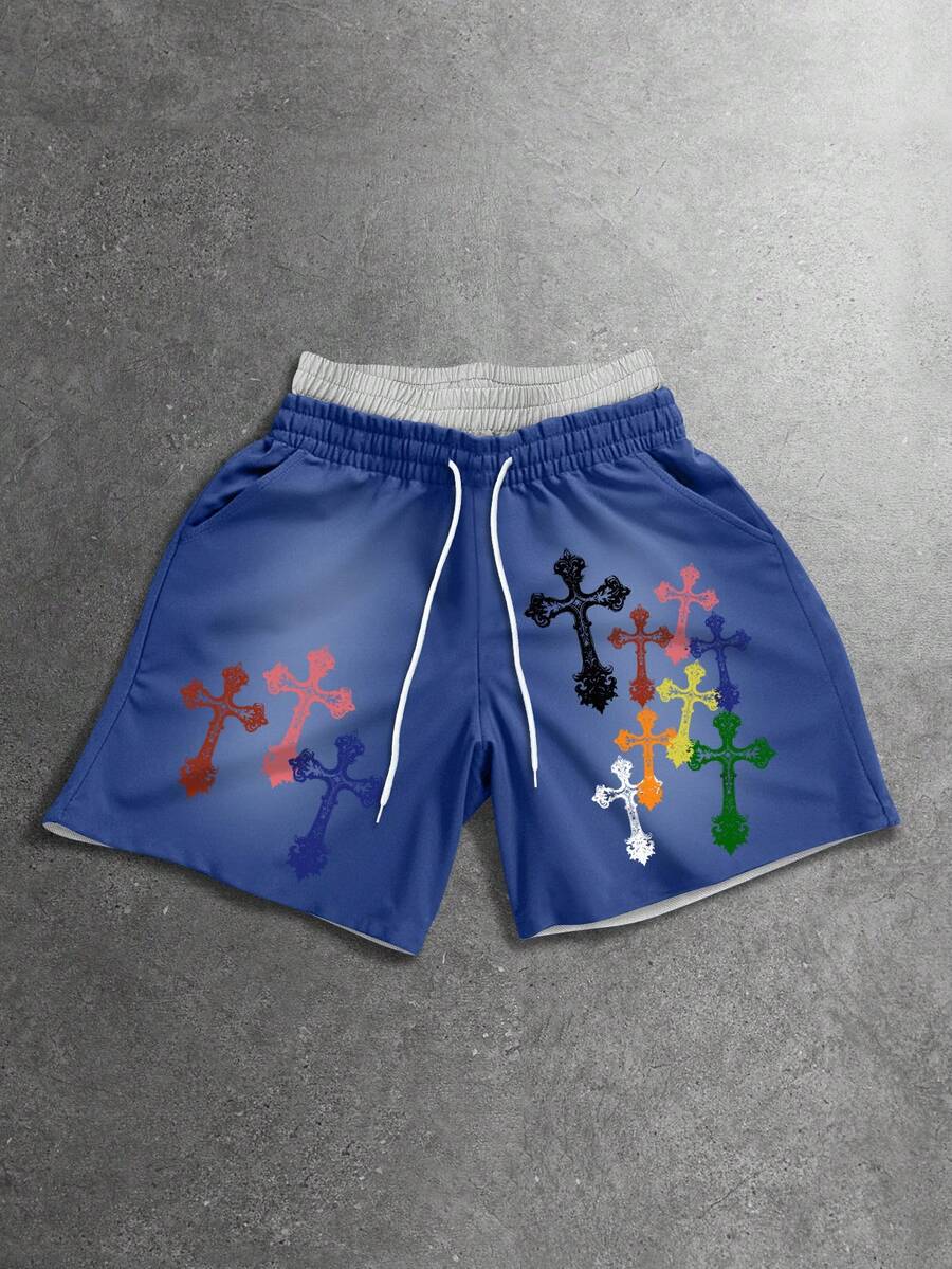 Pantalones cortos casuales de hombre con estampado de cruz, verano