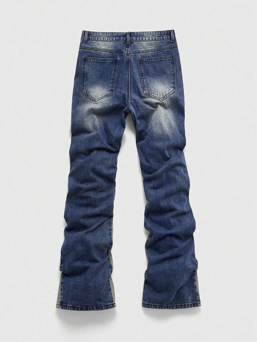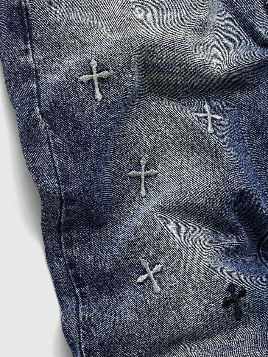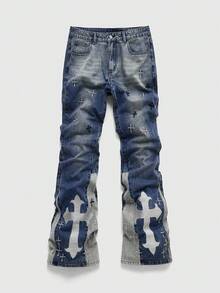 Jeans acampanados de moda casual para hombres con lavado y estampado de cruz