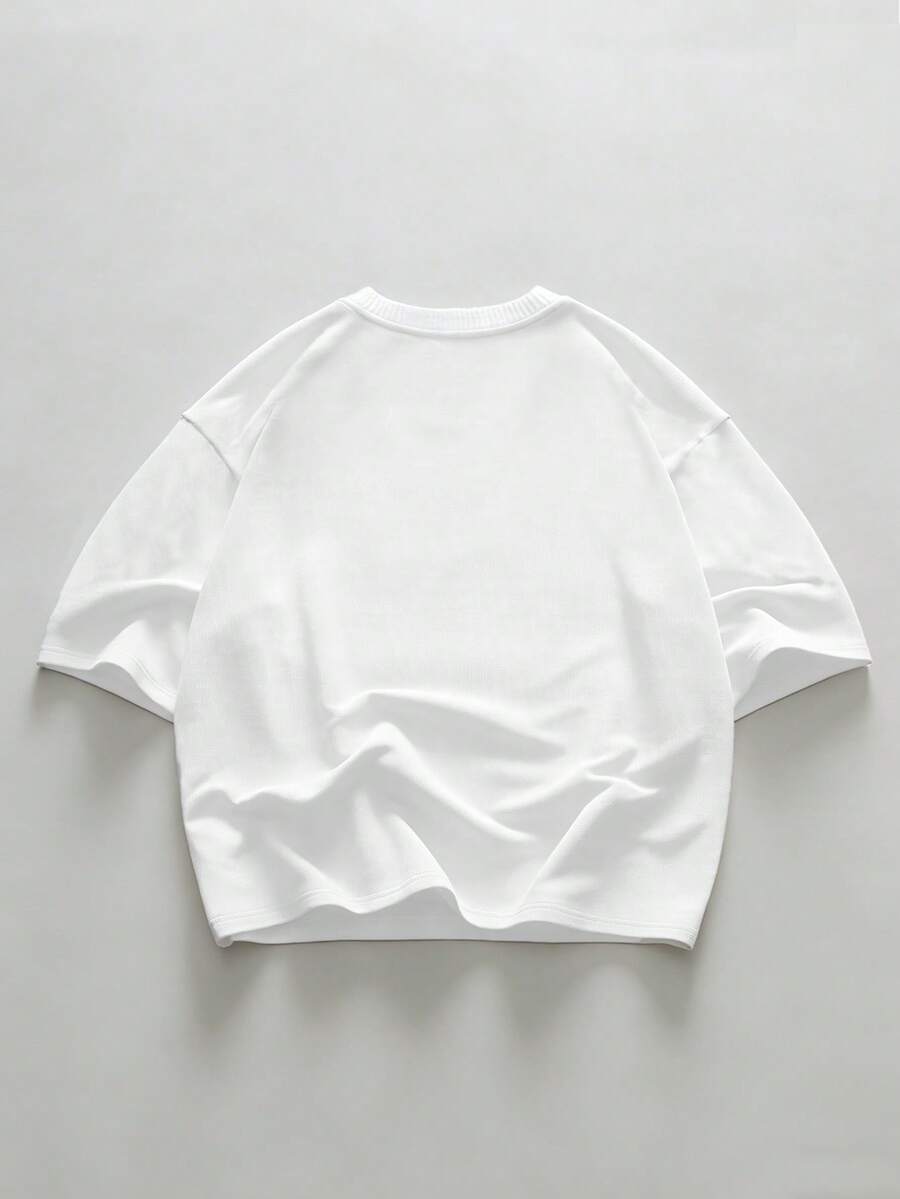 Camiseta blanca de manga corta con estampado de figura y letra, casual y de moda para el uso diario y el transporte, para hombre, verano
