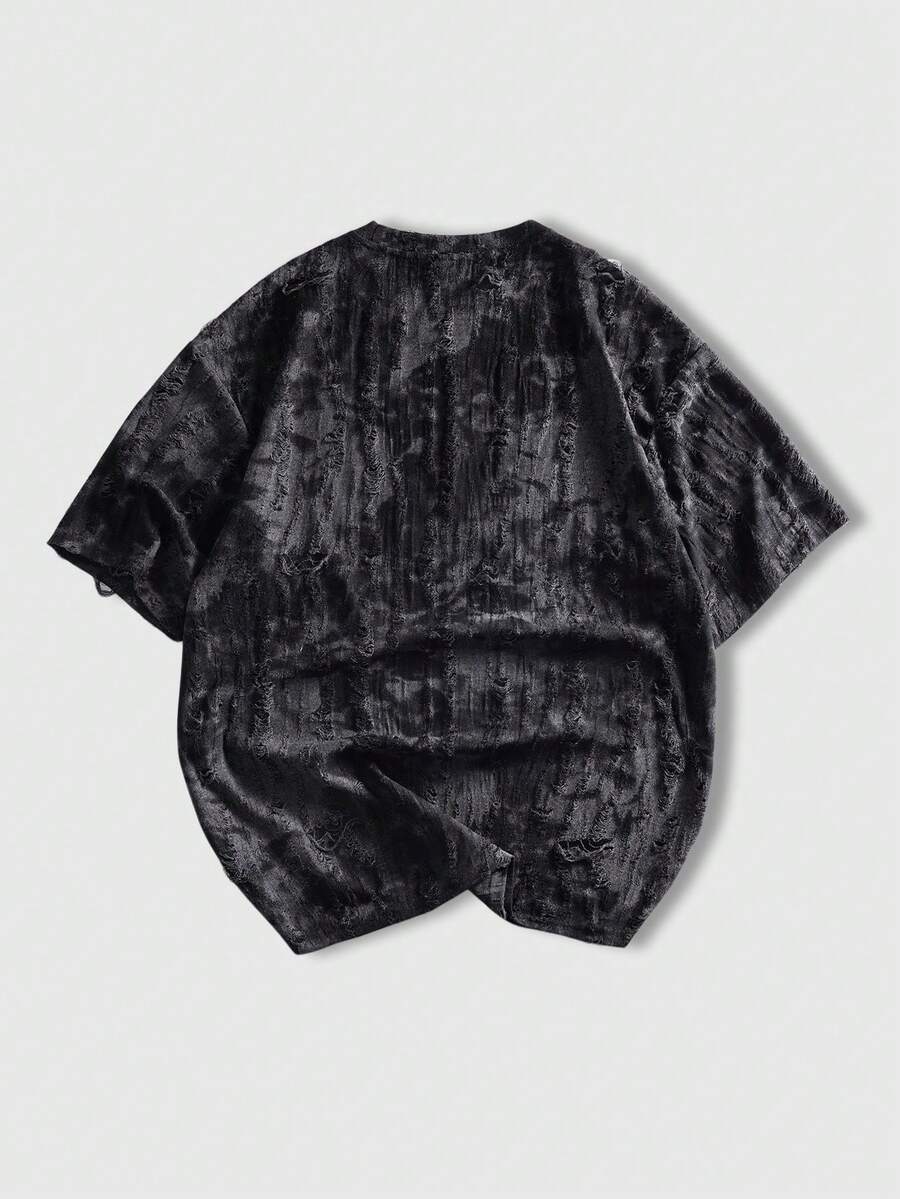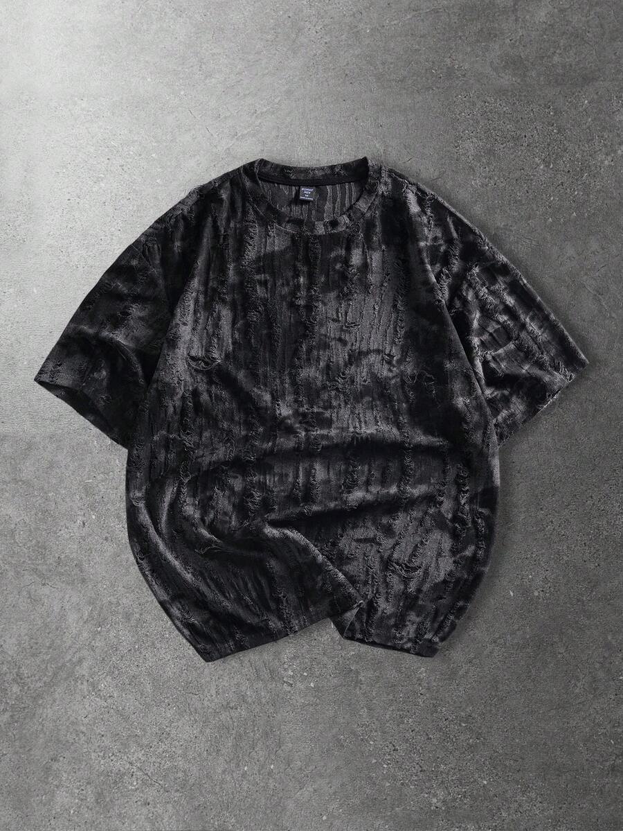 Camiseta de manga corta casual y de moda con efecto desgastado para hombre, de verano
