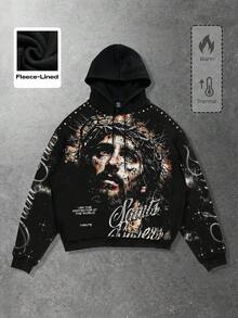 Sudadera con capucha casual con estampado de figura para hombres, otoño/invierno