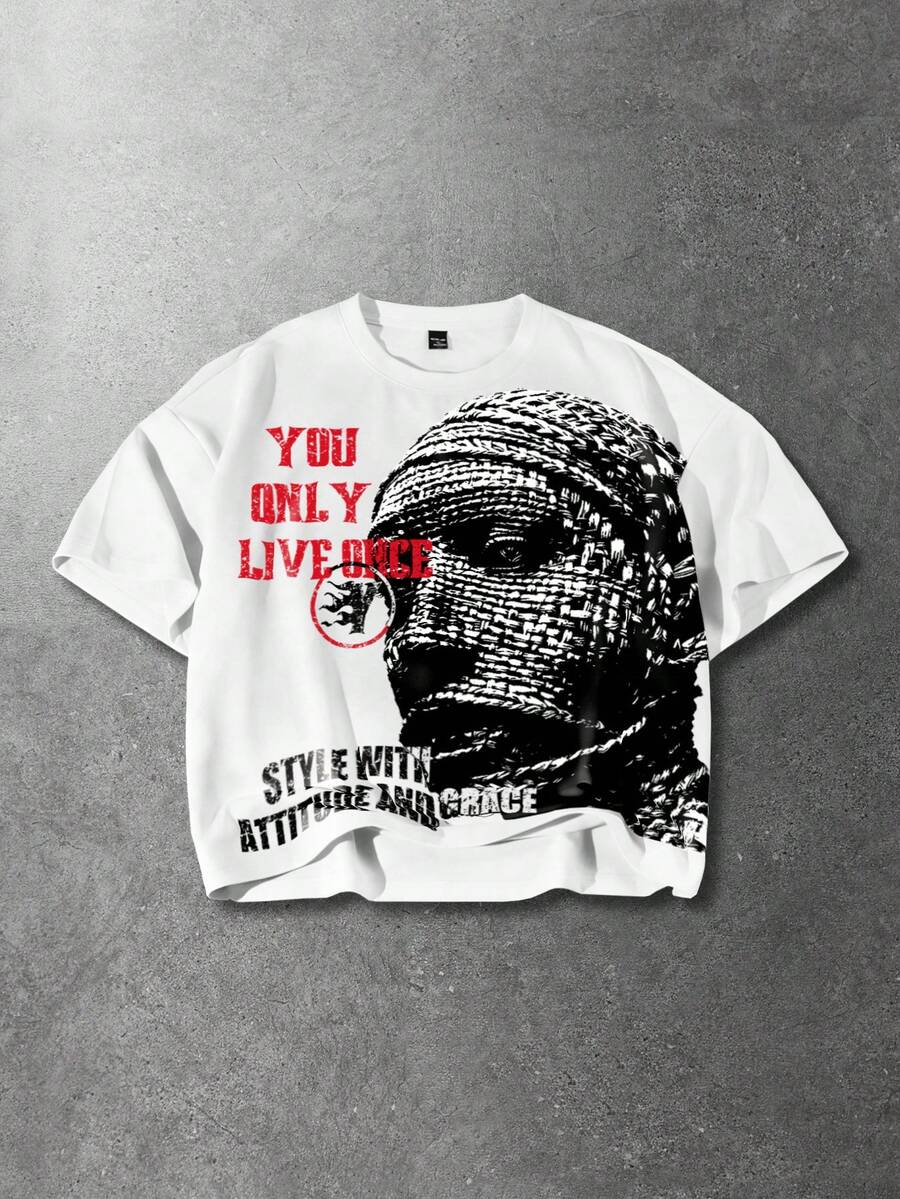 Camiseta de manga corta con estampado gráfico casual para hombres, estilo callejero retro