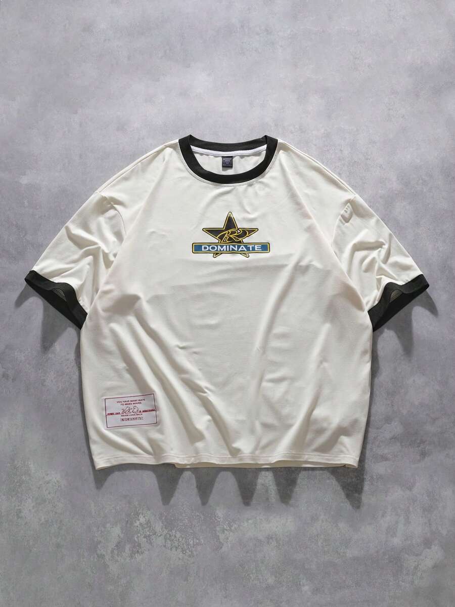Camiseta de manga corta de cuello redondo casual para hombre con ribete de contraste, para verano