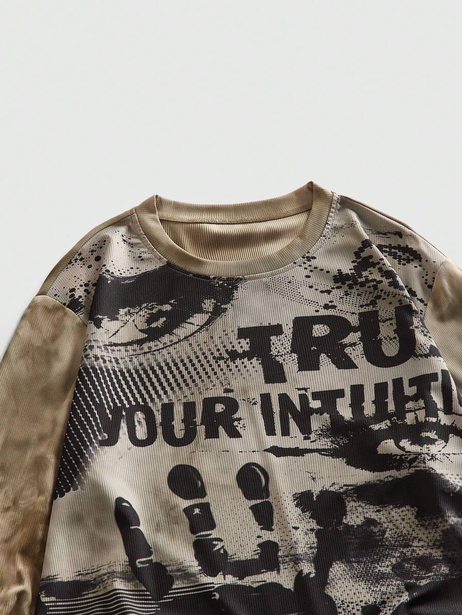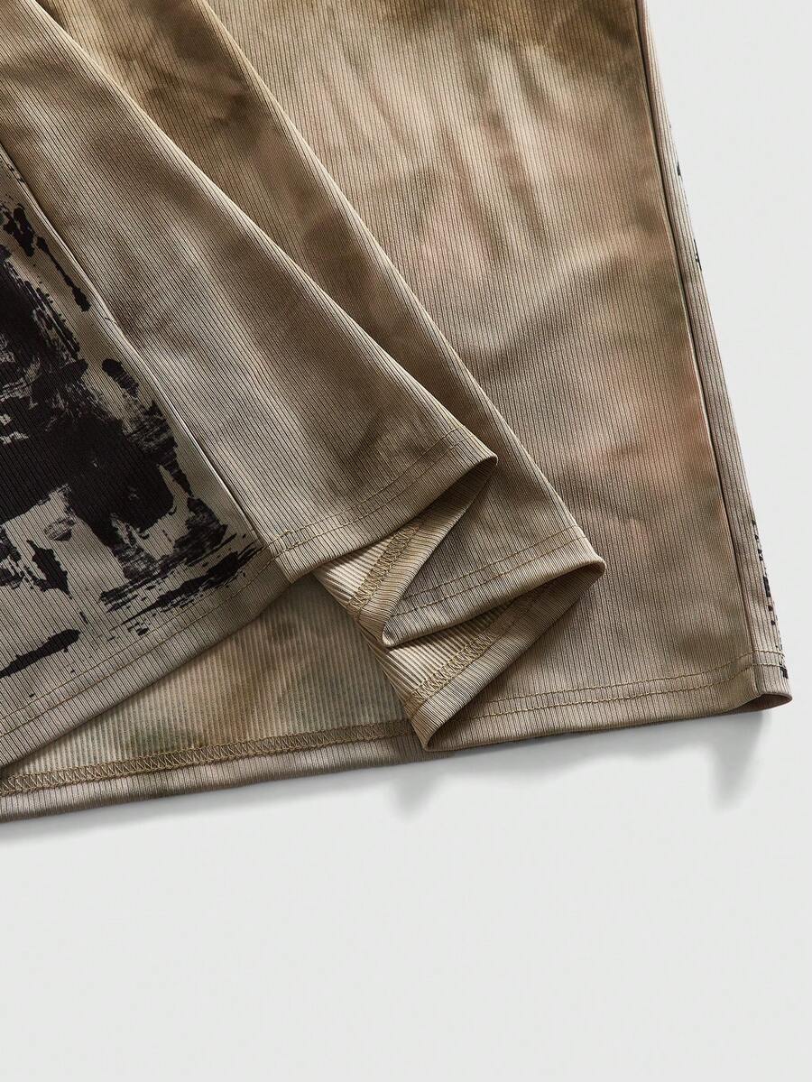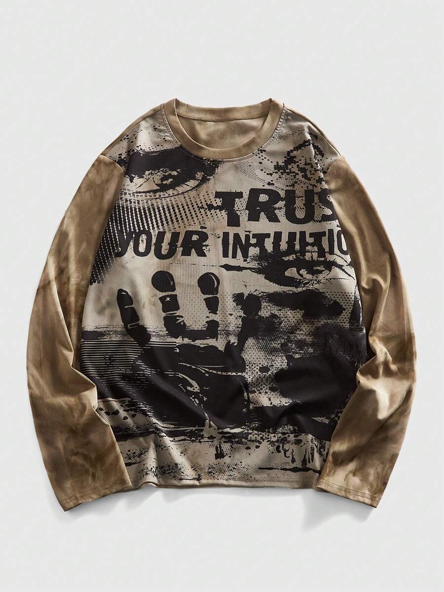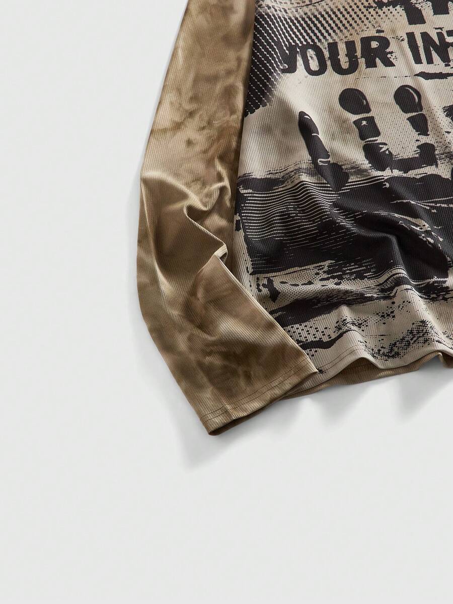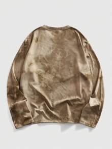 Camiseta de manga larga de cuello redondo con estampado salpicado casual para hombres, versátil