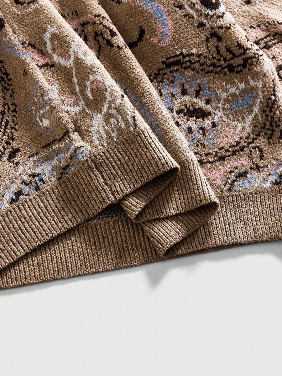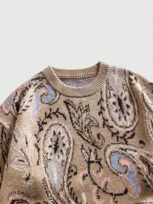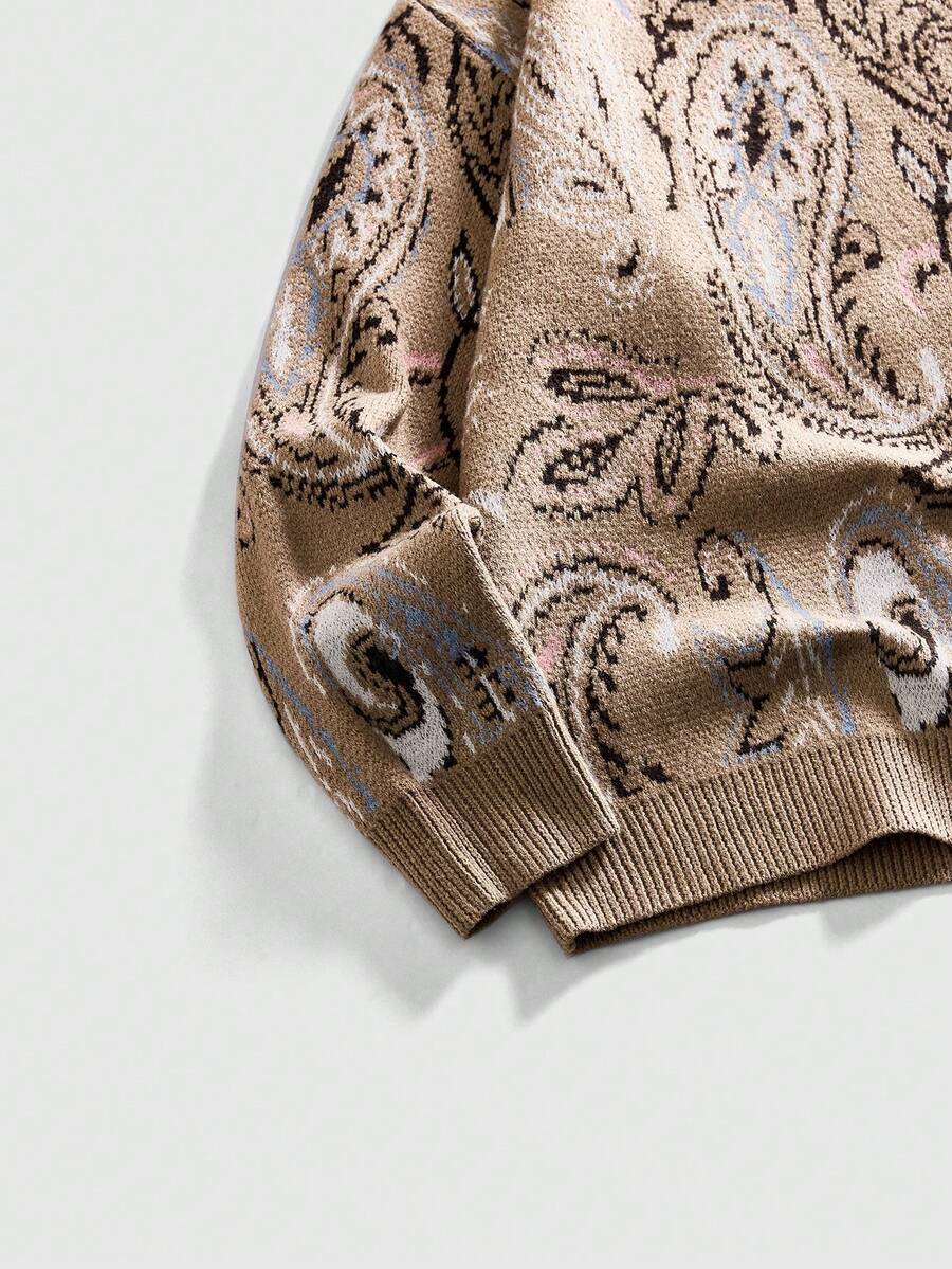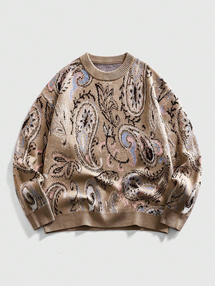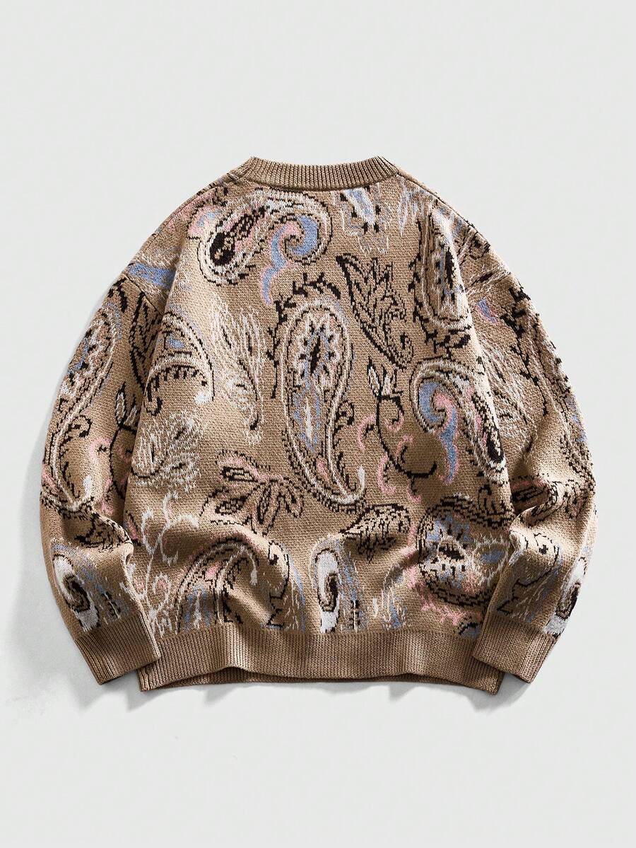 Jersey de cuello redondo con estampado de anacardo retro para hombres
