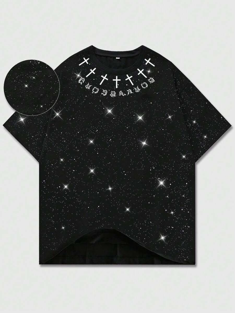 Camiseta con cruz de estilo oscuro para hombres, casual y versátil