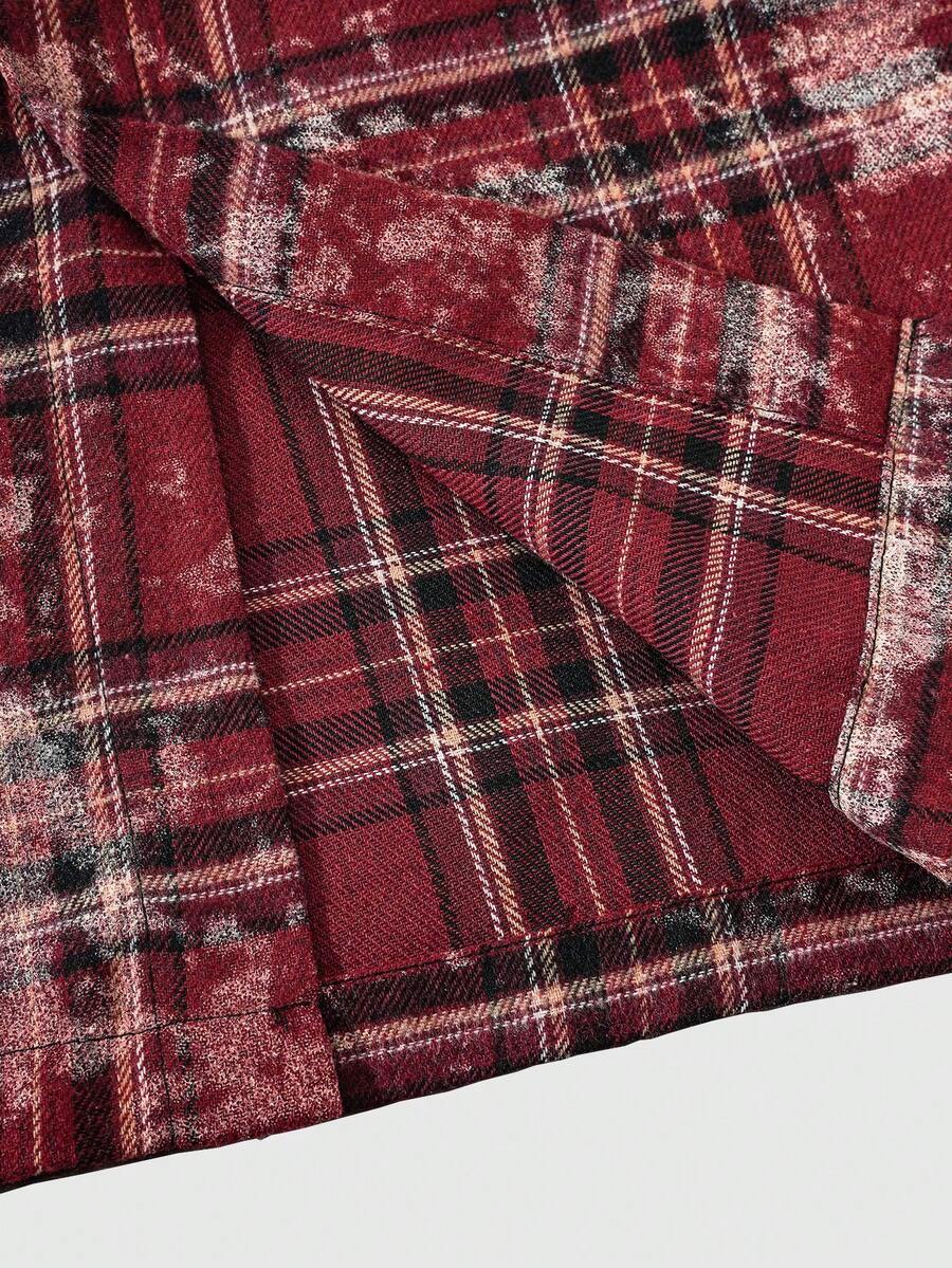 Camisa a cuadros desgastada con brillantes rhinestones para hombre, corte holgado