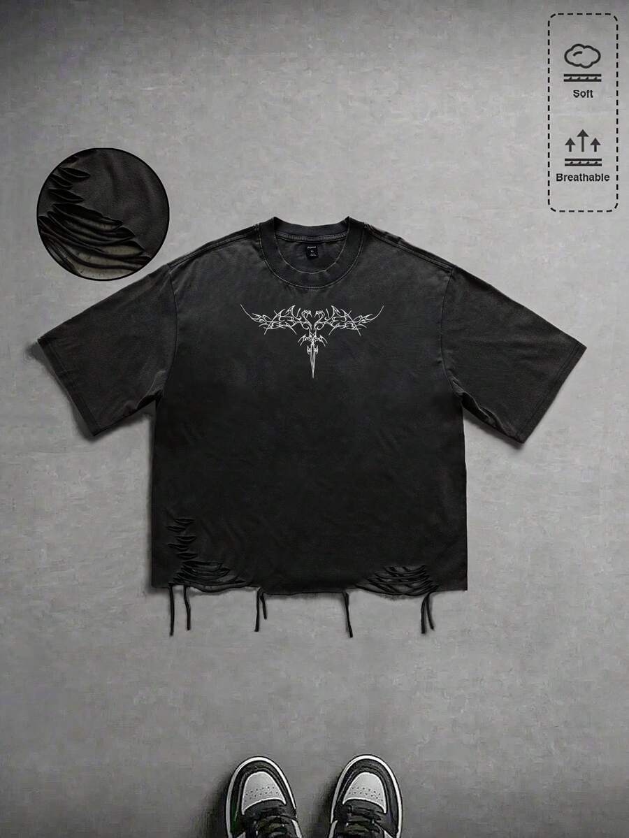Camiseta holgada con efecto desgastado y rasgado, estilo streetwear