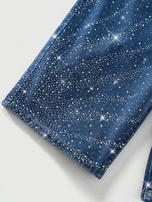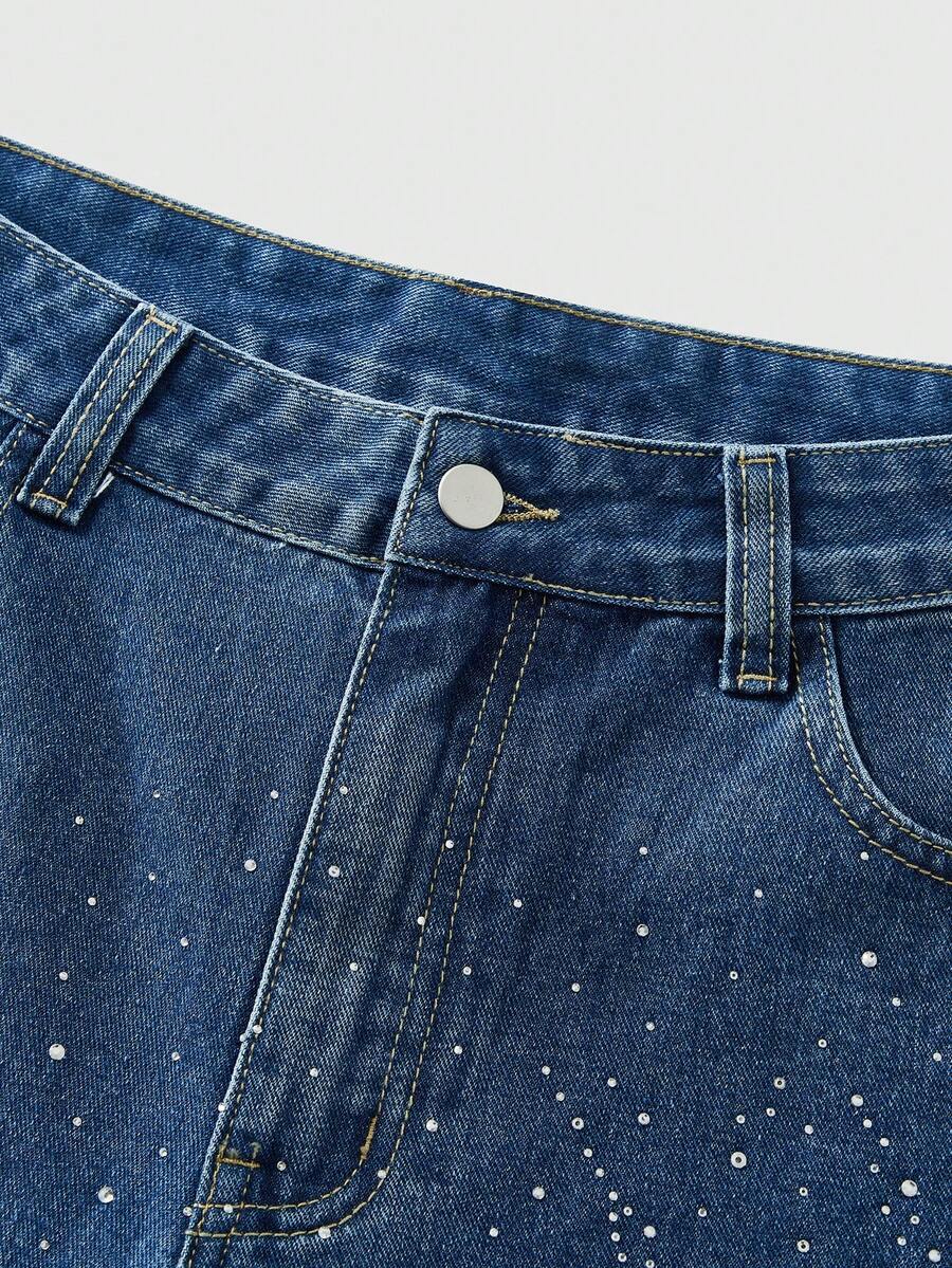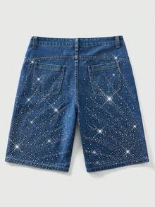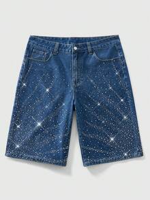 Pantalones cortos de mezclilla azul desgastada con rhinestones para hombre