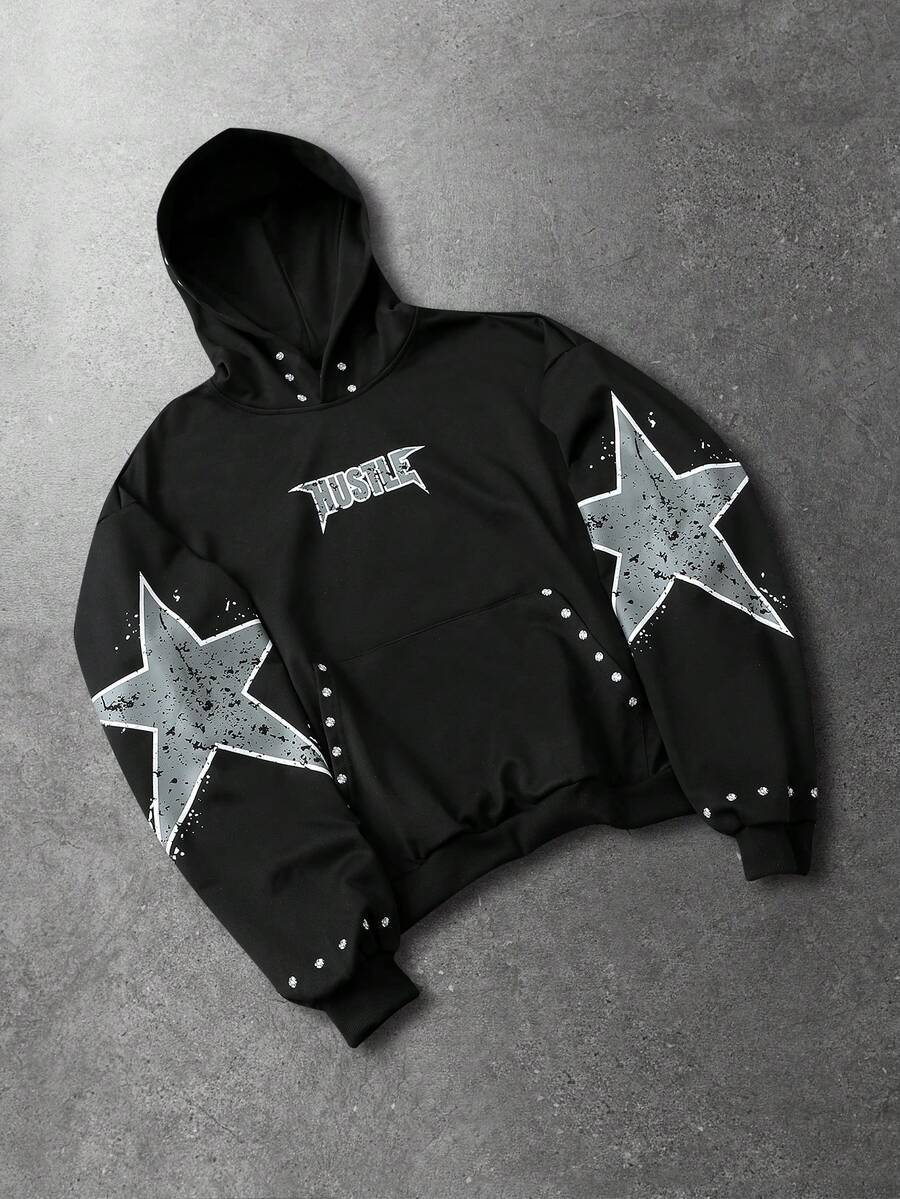 Sudadera con capucha con cordón y estampado de estrella de cinco puntas, de manga larga, para hombre