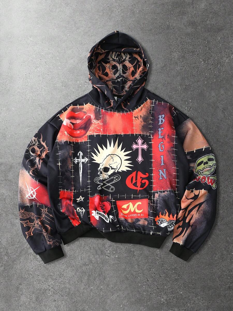 Sudadera con capucha holgada, casual y versátil con estampado de anime para hombres