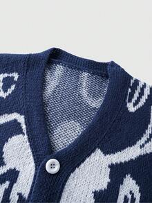 Suéter holgado de manga larga con estampado floral jacquard para hombre