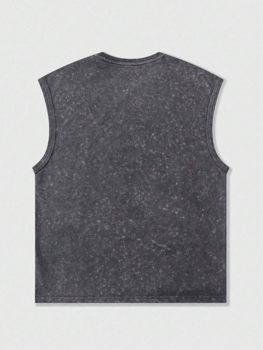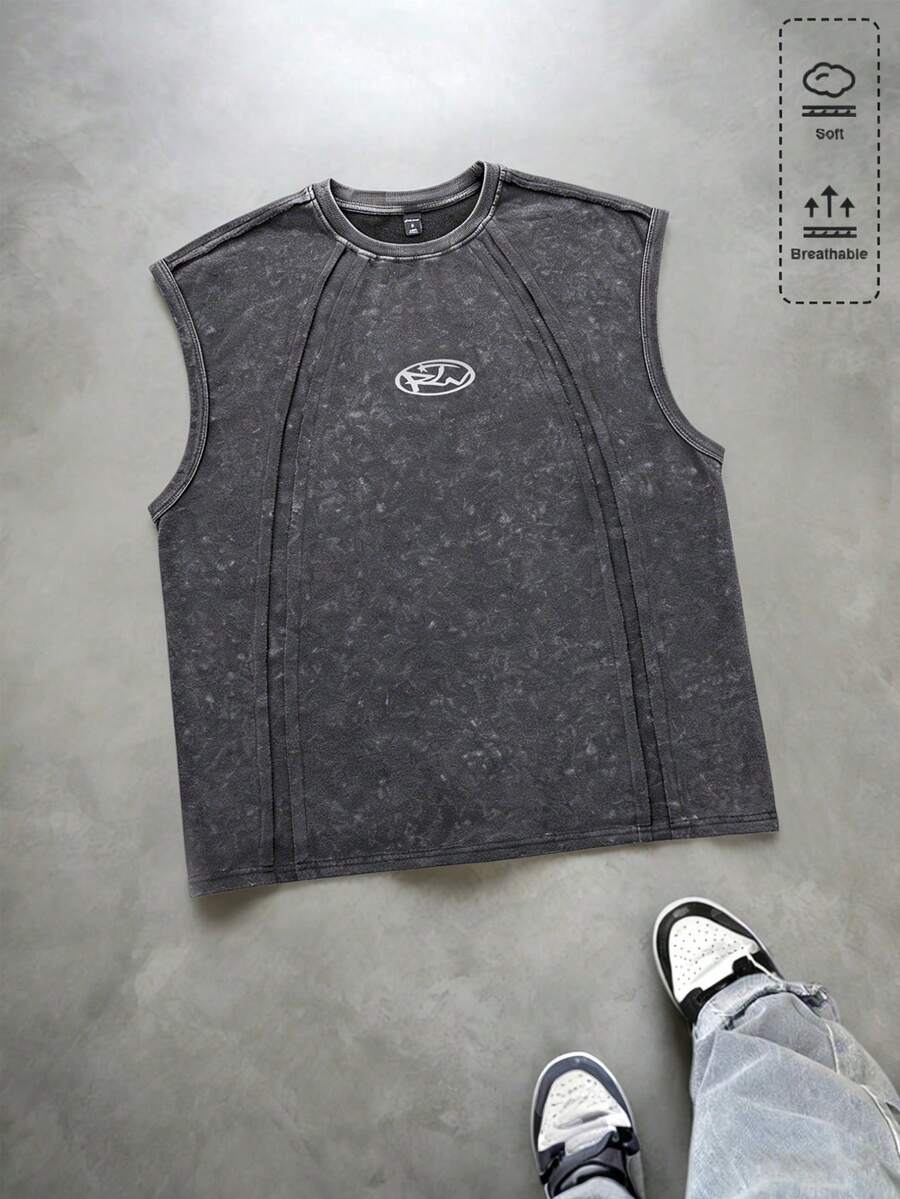 Camiseta de tirantes casual con cuello redondo y estampado geométrico de retazos para hombre
