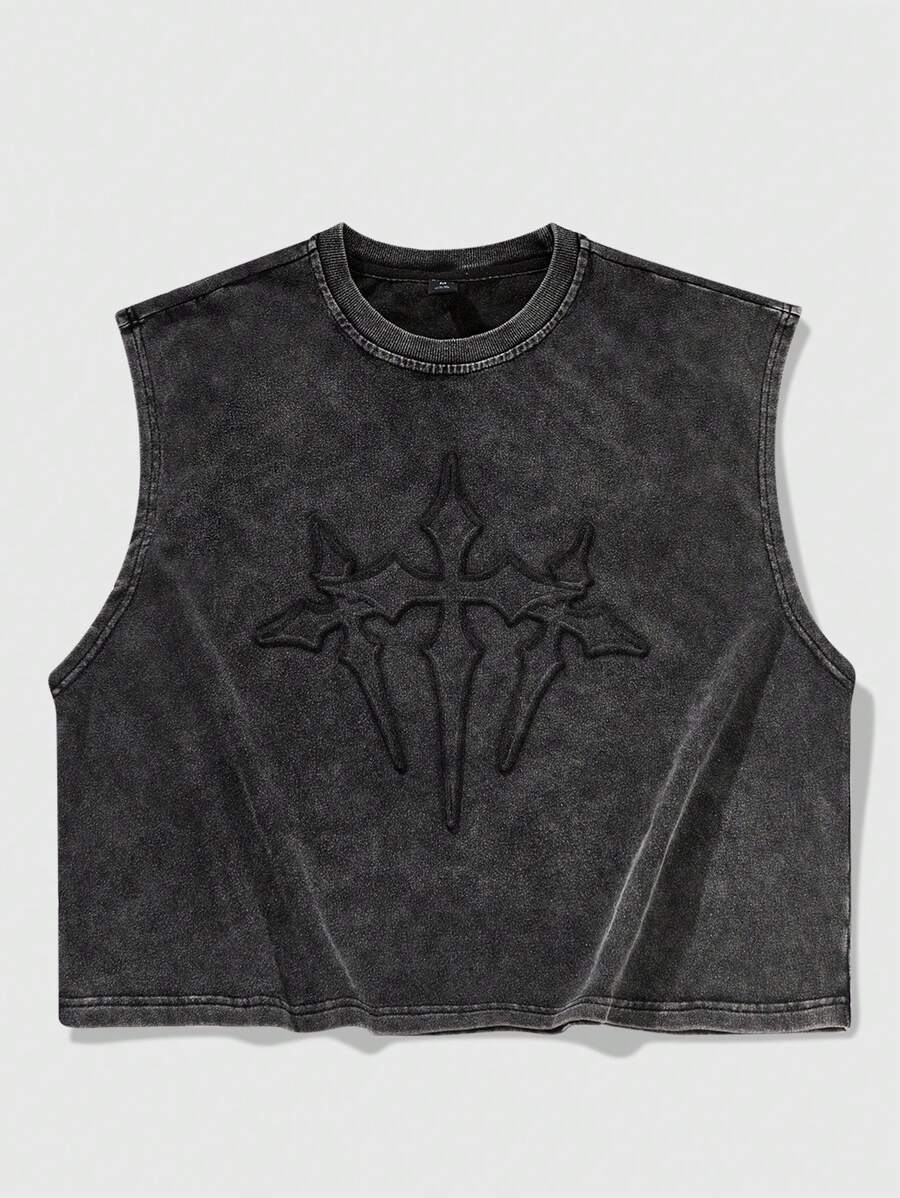 Goth Camiseta de tirantes gótica casual de hombre con bordado gráfico de cruz y copo de nieve, para Halloween