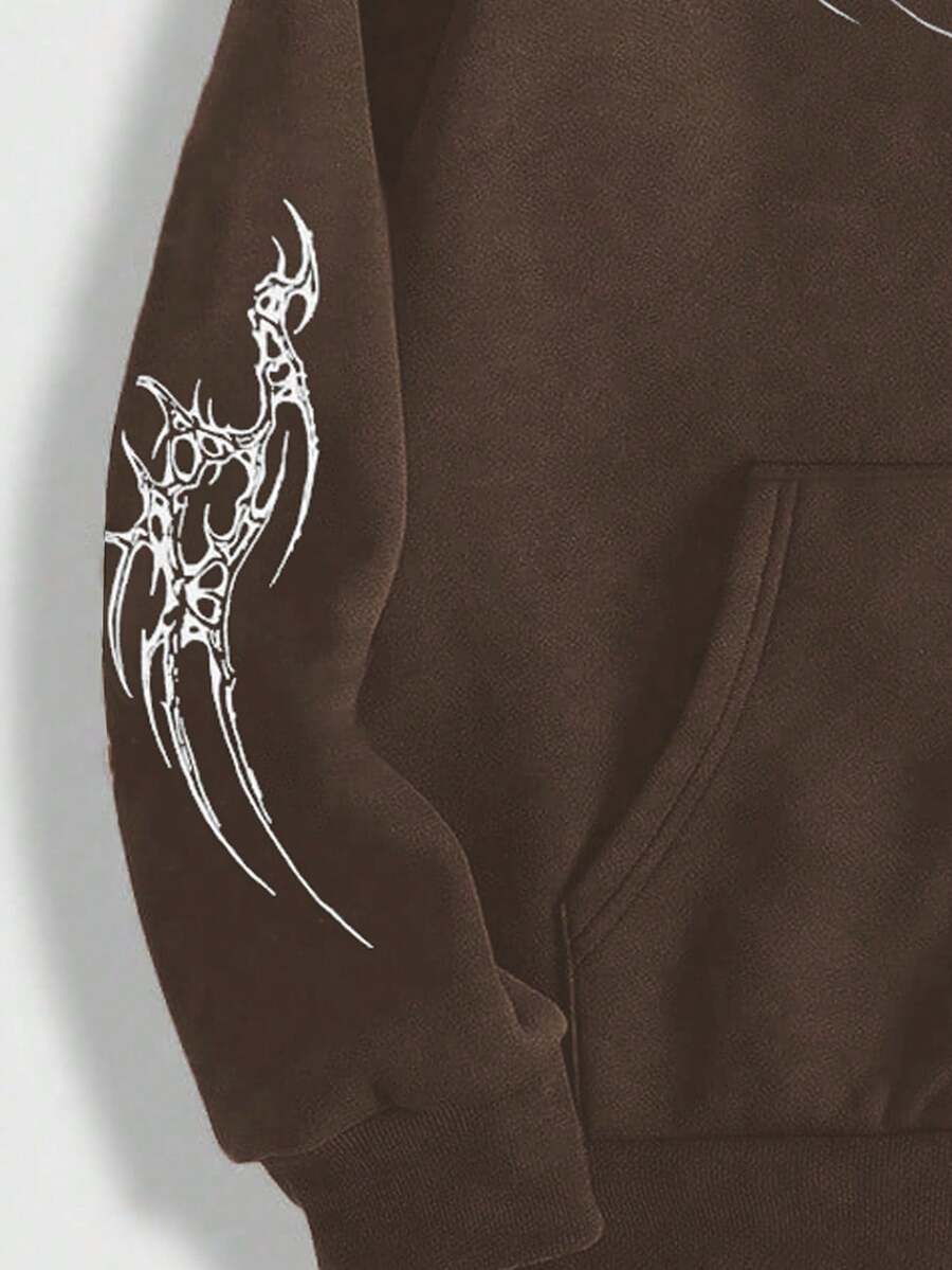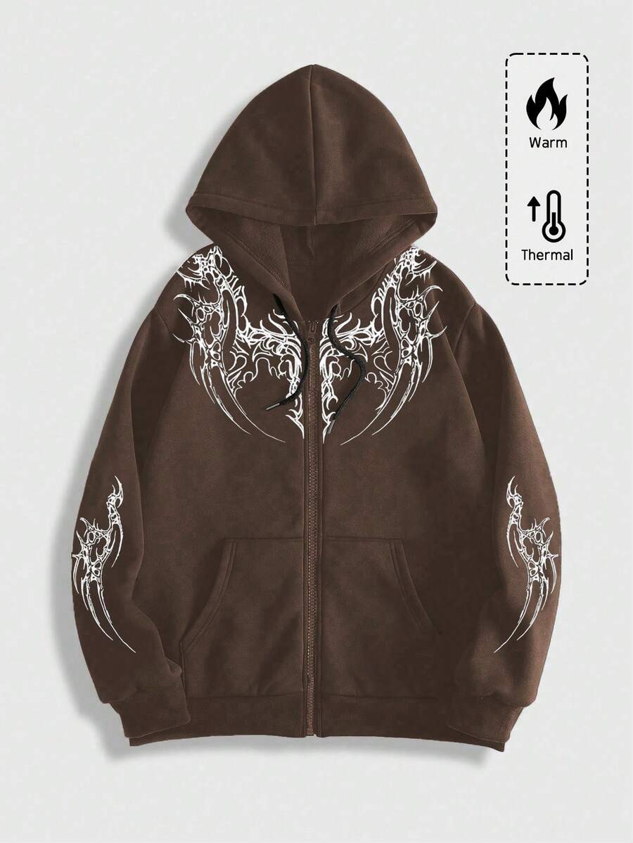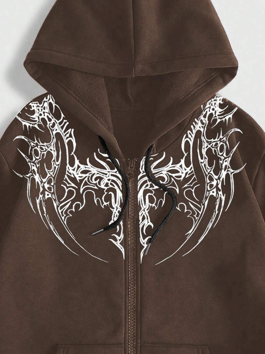 Goth Sudadera con capucha casual con diseño de bolsillo con cremallera y estampado gótico de manga larga para hombre, otoño/invierno