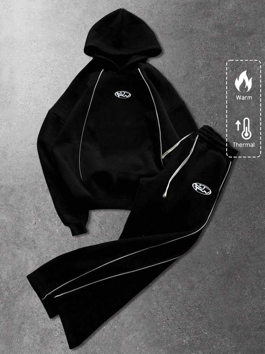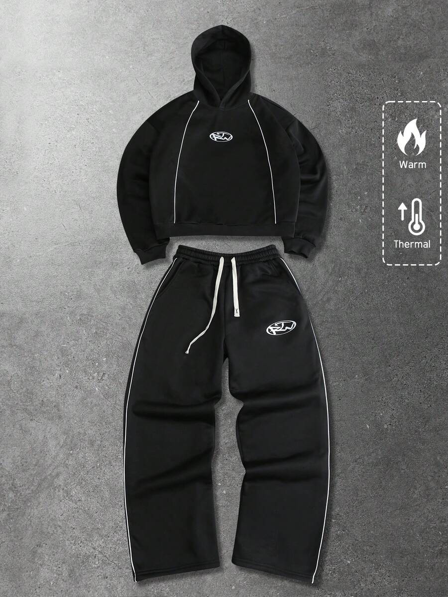 Conjunto de sudadera con capucha para hombre, sudadera con capucha casual de estilo callejero con estampado en inglés americano, para otoño/invierno