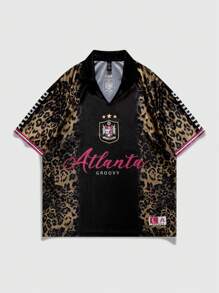 Street Life Camisa polo de verano con manga corta, con estampado de leopardo y letras, de moda para hombre