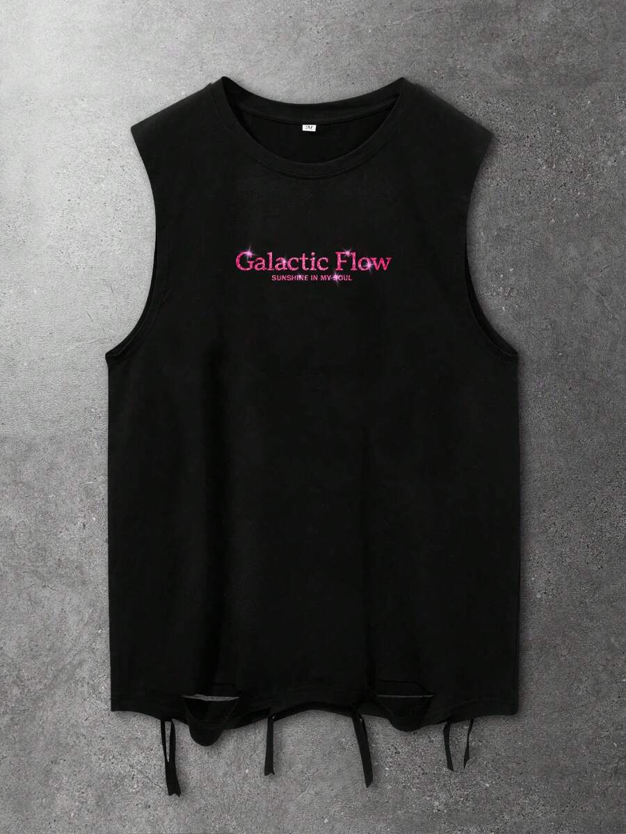 Camiseta de tirantes negra casual con estampado de letras para hombre, verano