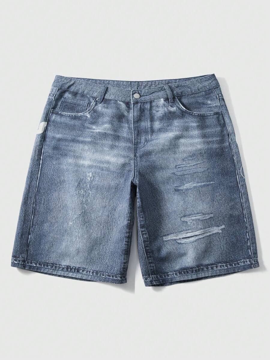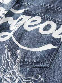 Pantalones cortos vaqueros casuales con bolsillo y estampado de letras y calavera para hombres