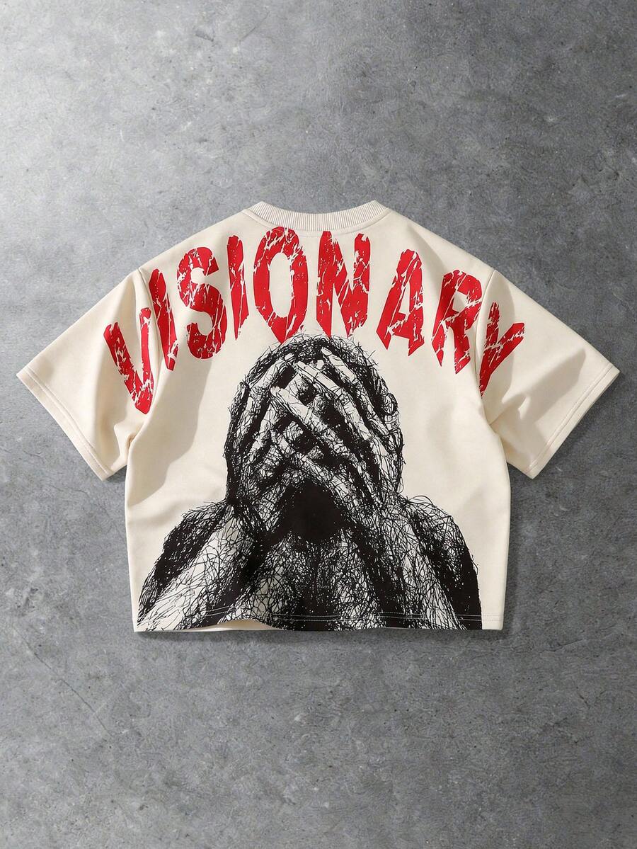 Camiseta de manga corta con estampado, de corte holgado y caída de hombros para hombre