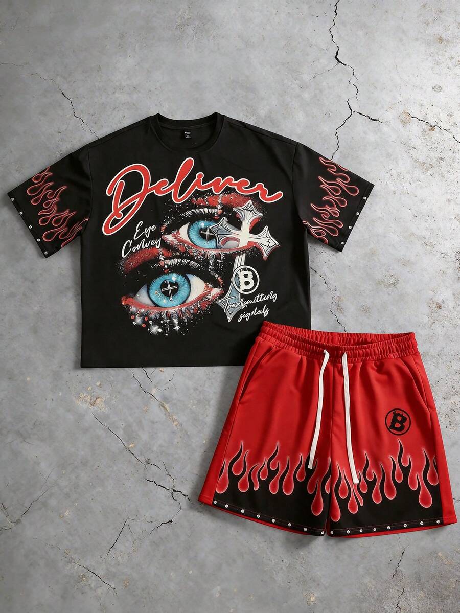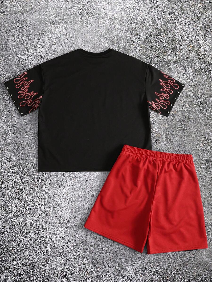 Conjunto de camisetas de manga corta de corte holgado para hombre con estampado de diamantes brillantes