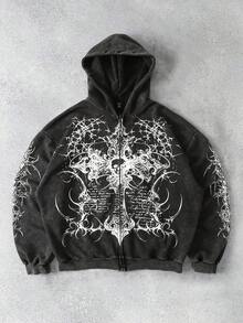 Sudadera con capucha de manga larga con estampado minimalista para hombre