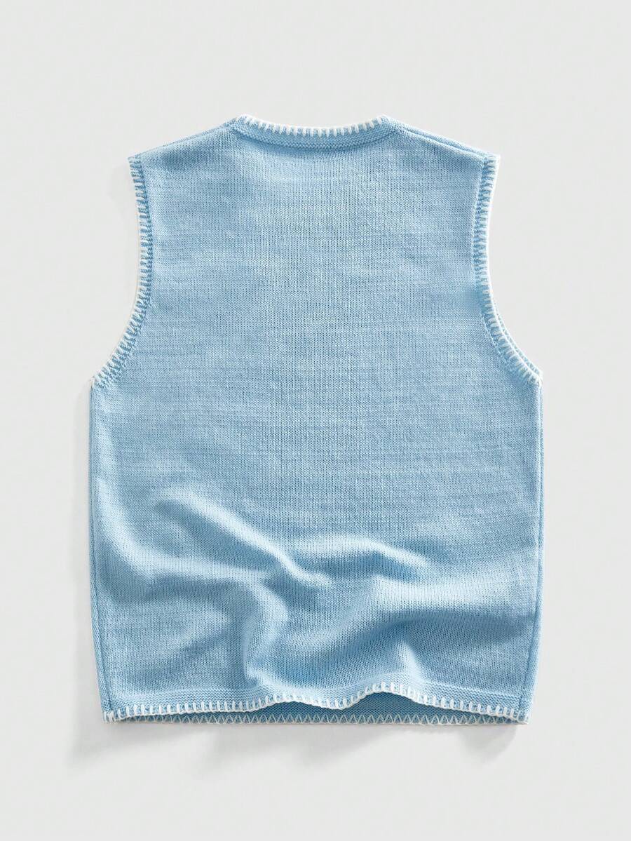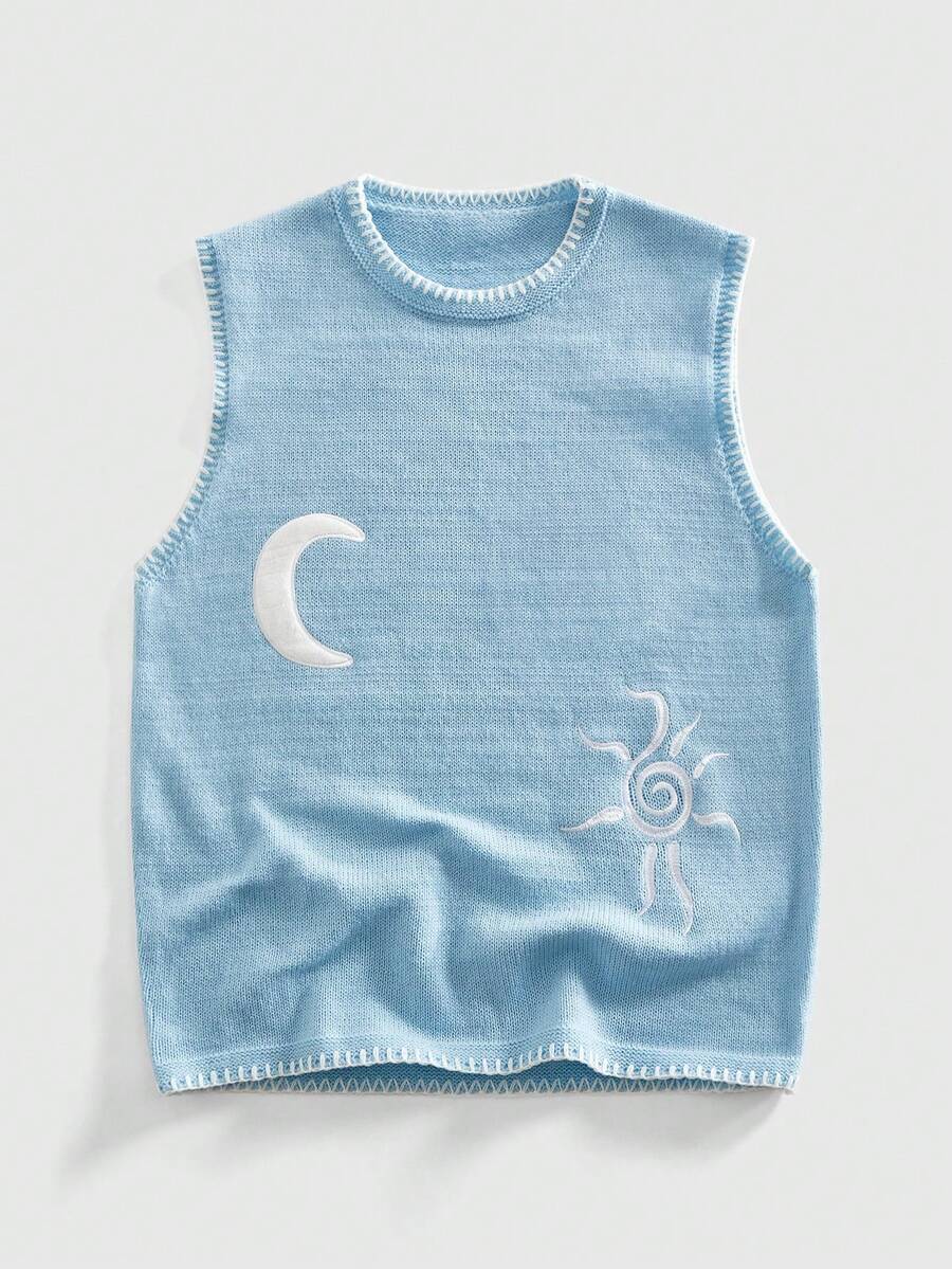 Chaleco de punto casual de cuello redondo con bordado de luna para vacaciones para hombres