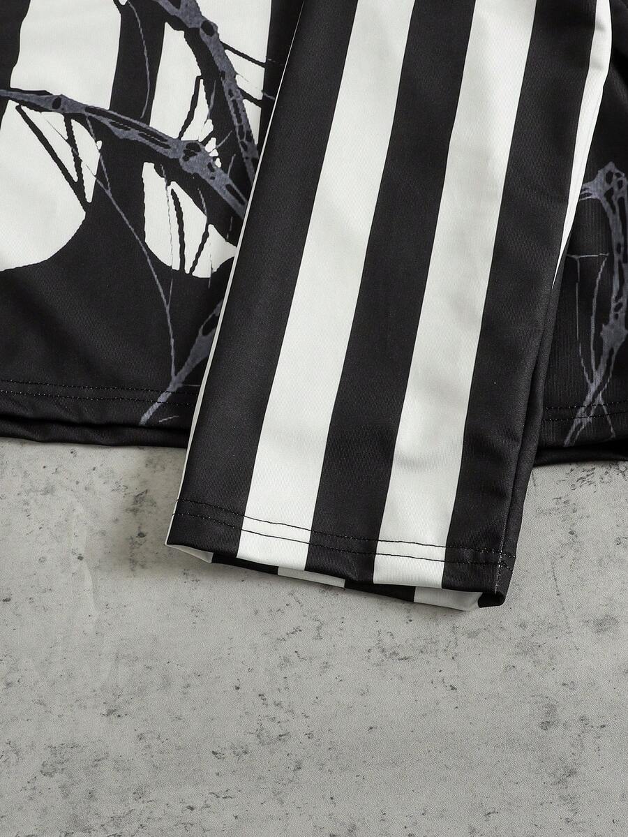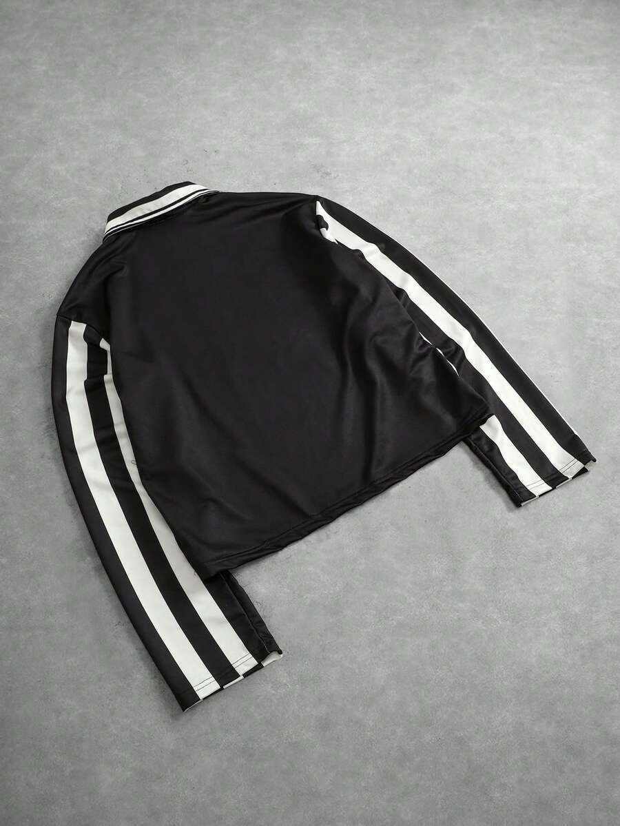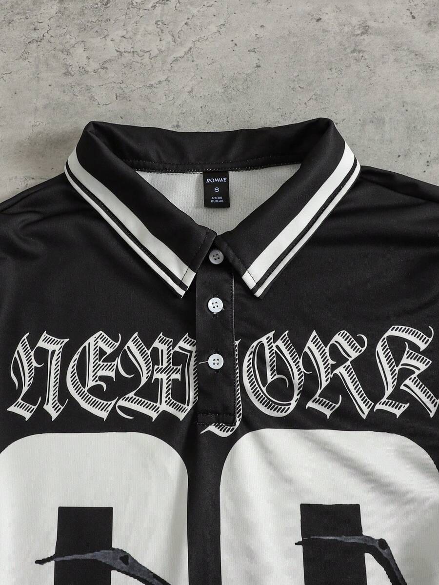 Camisa polo casual de manga larga con estampado de rayas numéricas para hombre, corte holgado