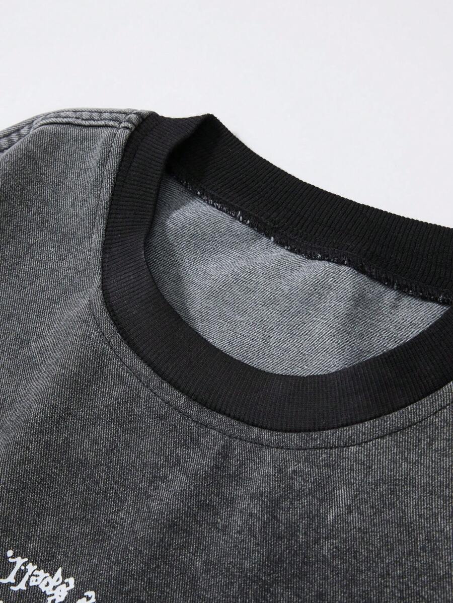 Prep Camiseta vaquera de manga corta y cuello redondo, con diseño de letras, corte holgado para hombres