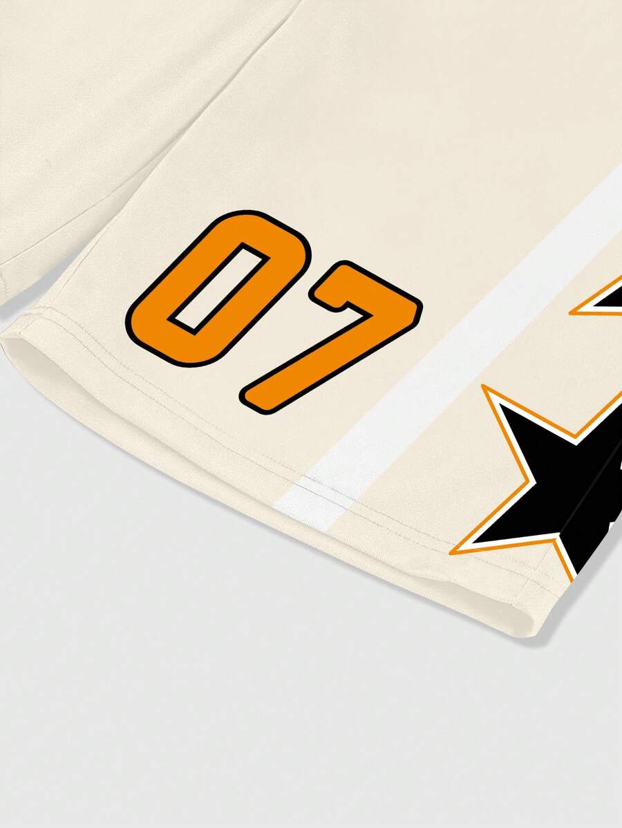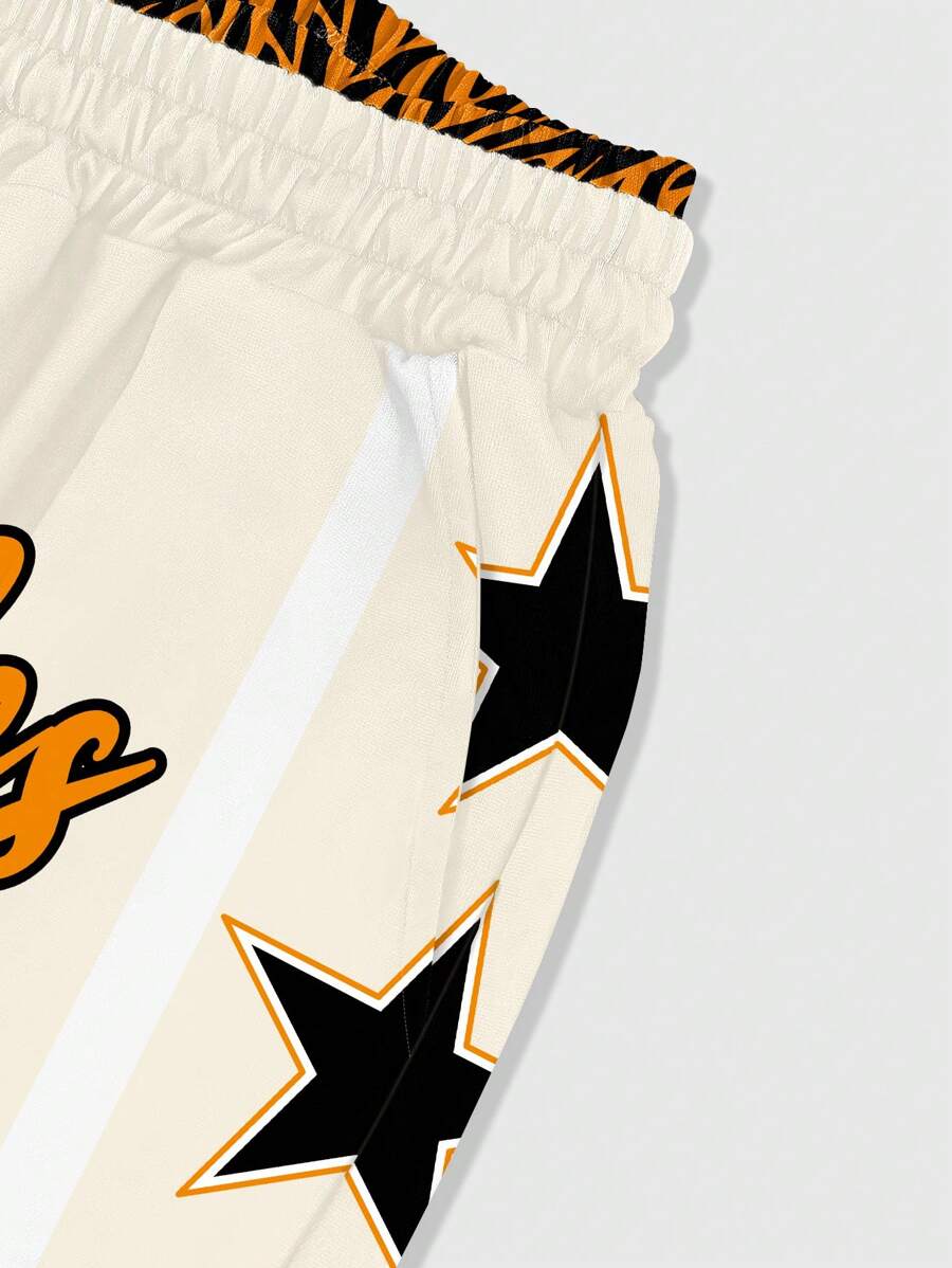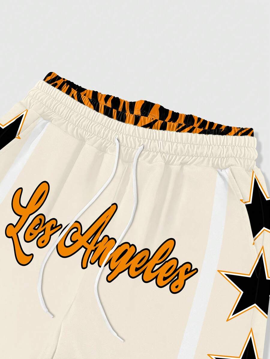 Prep Pantalones cortos casuales de verano para hombres con estampado de estrellas y letras y cintura con cordón