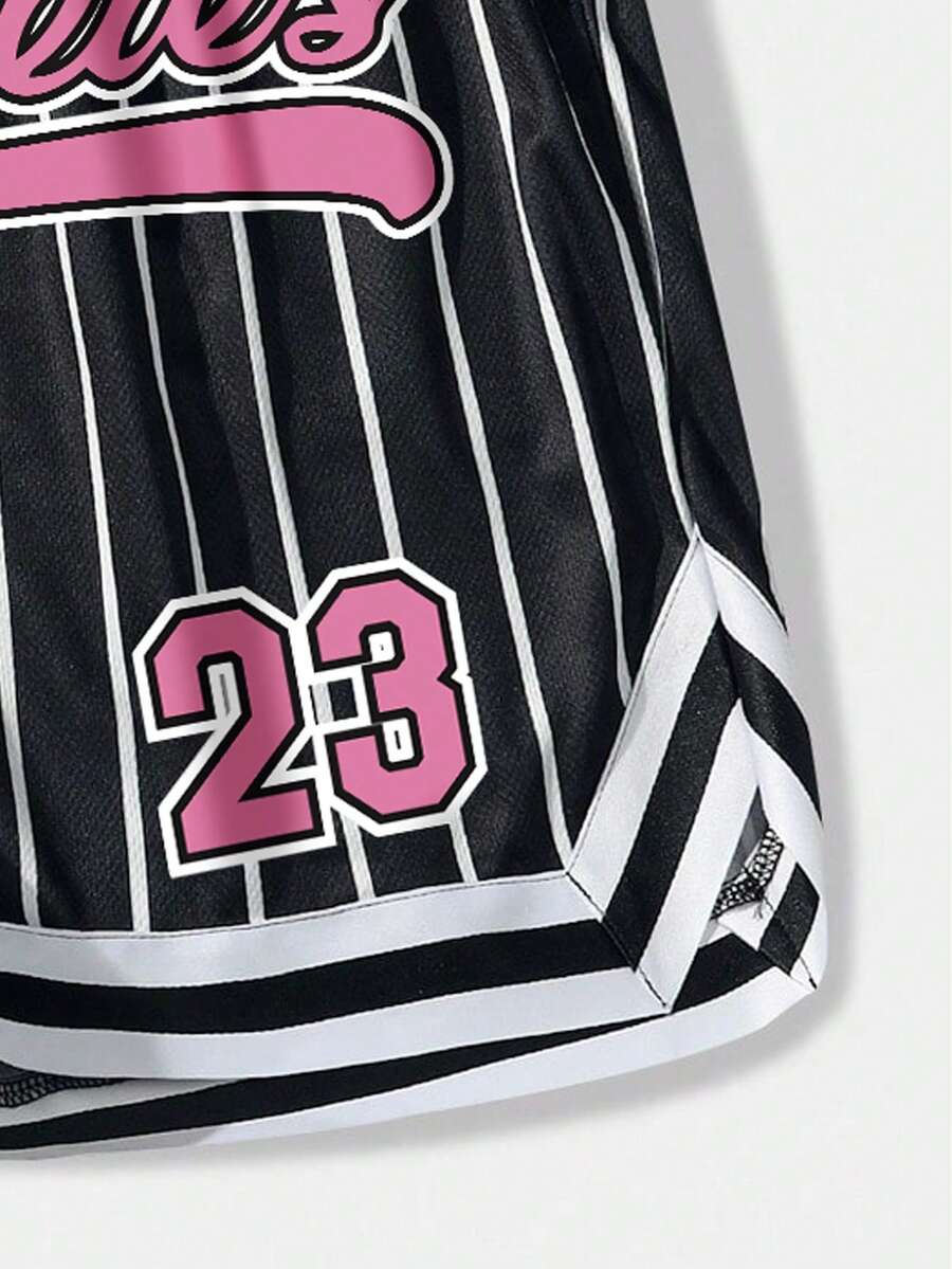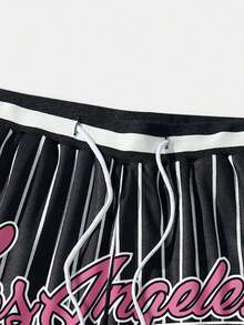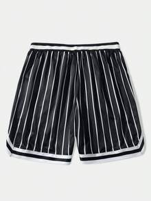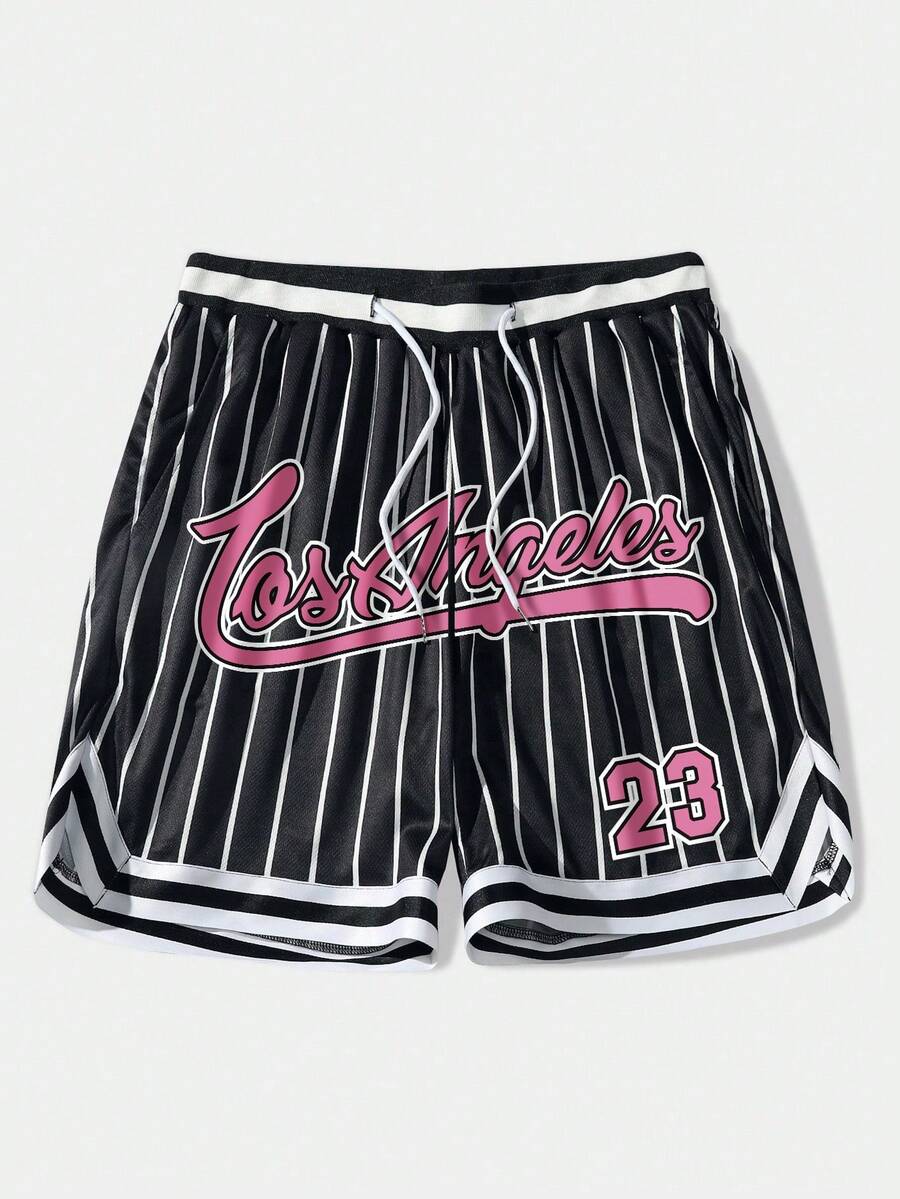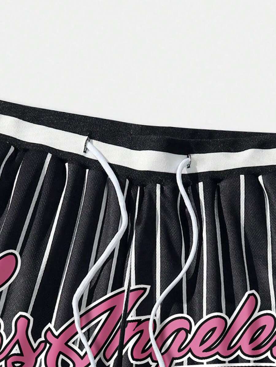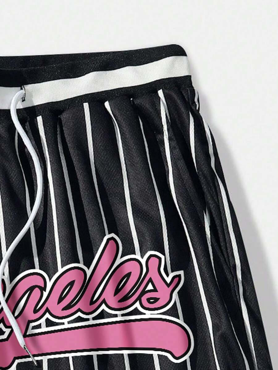 Prep Pantalones cortos casuales sueltos con cordón y rayas de letras para hombres