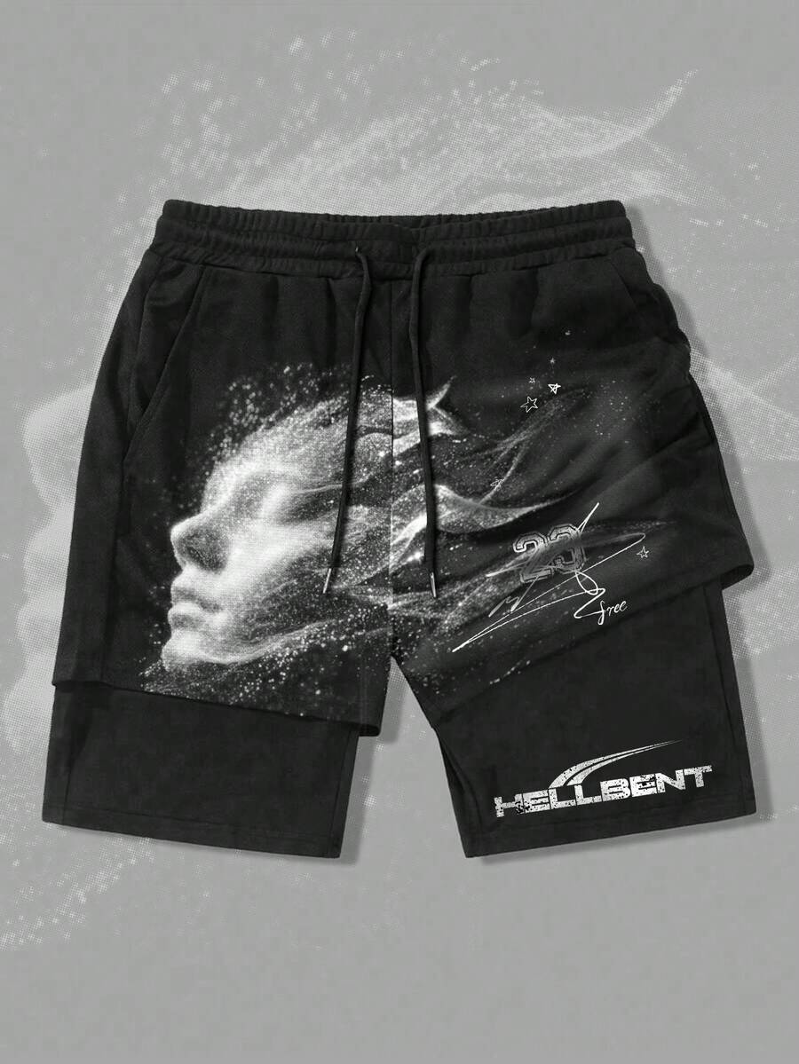Pantalones cortos casuales con cintura elástica y cordón para hombres